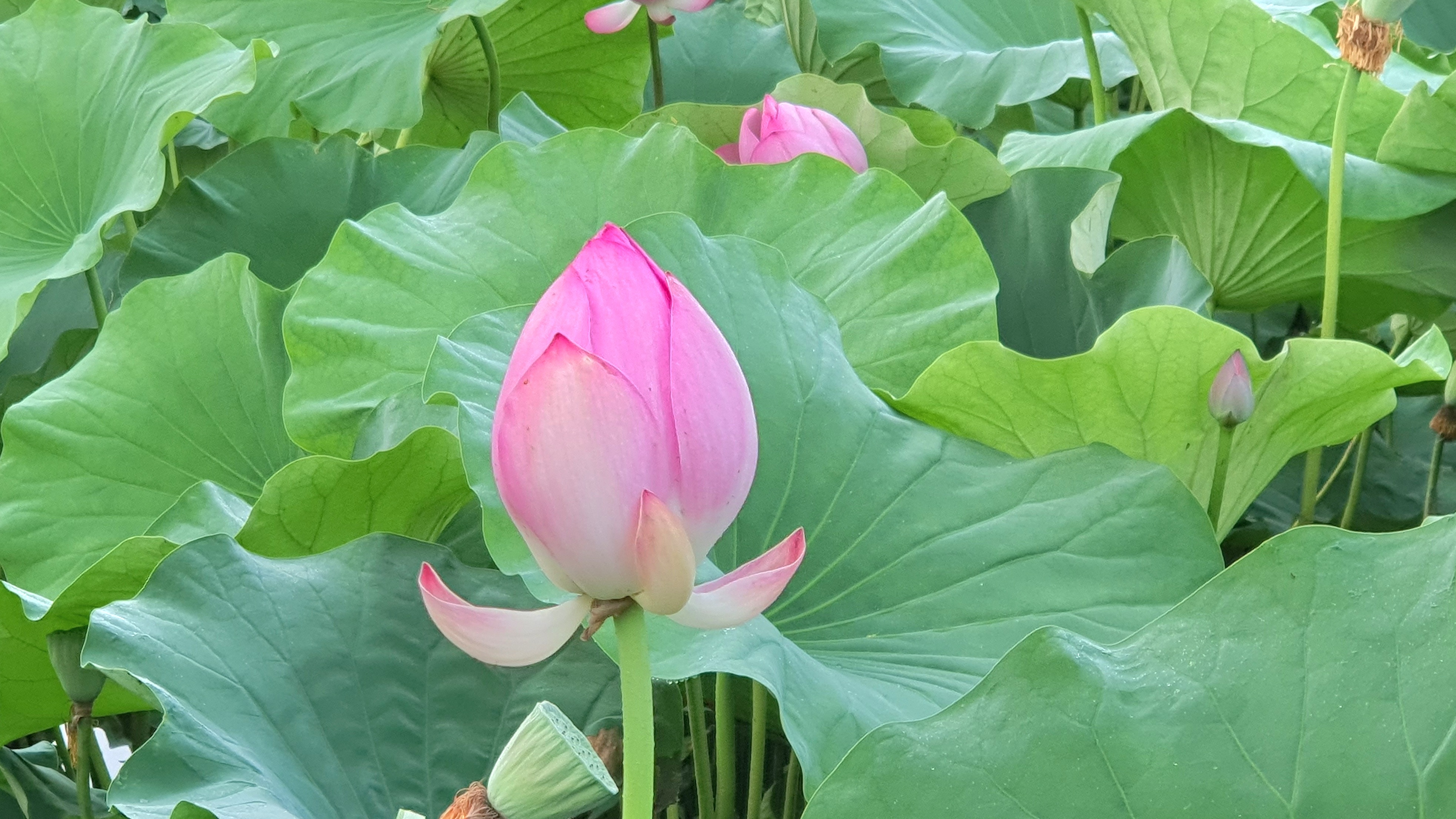 할배는 연꽃 사이로 핸드폰을 들이밀며, 할멈 얼굴을 담으려 애를 썼다.