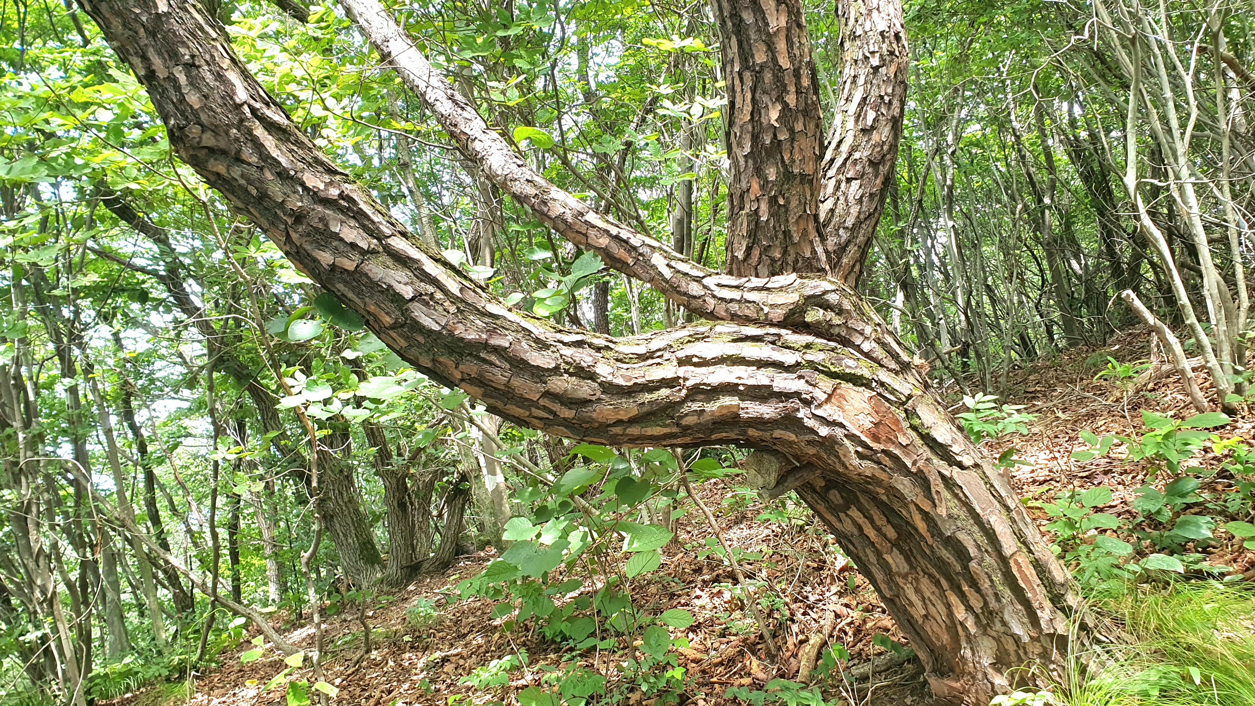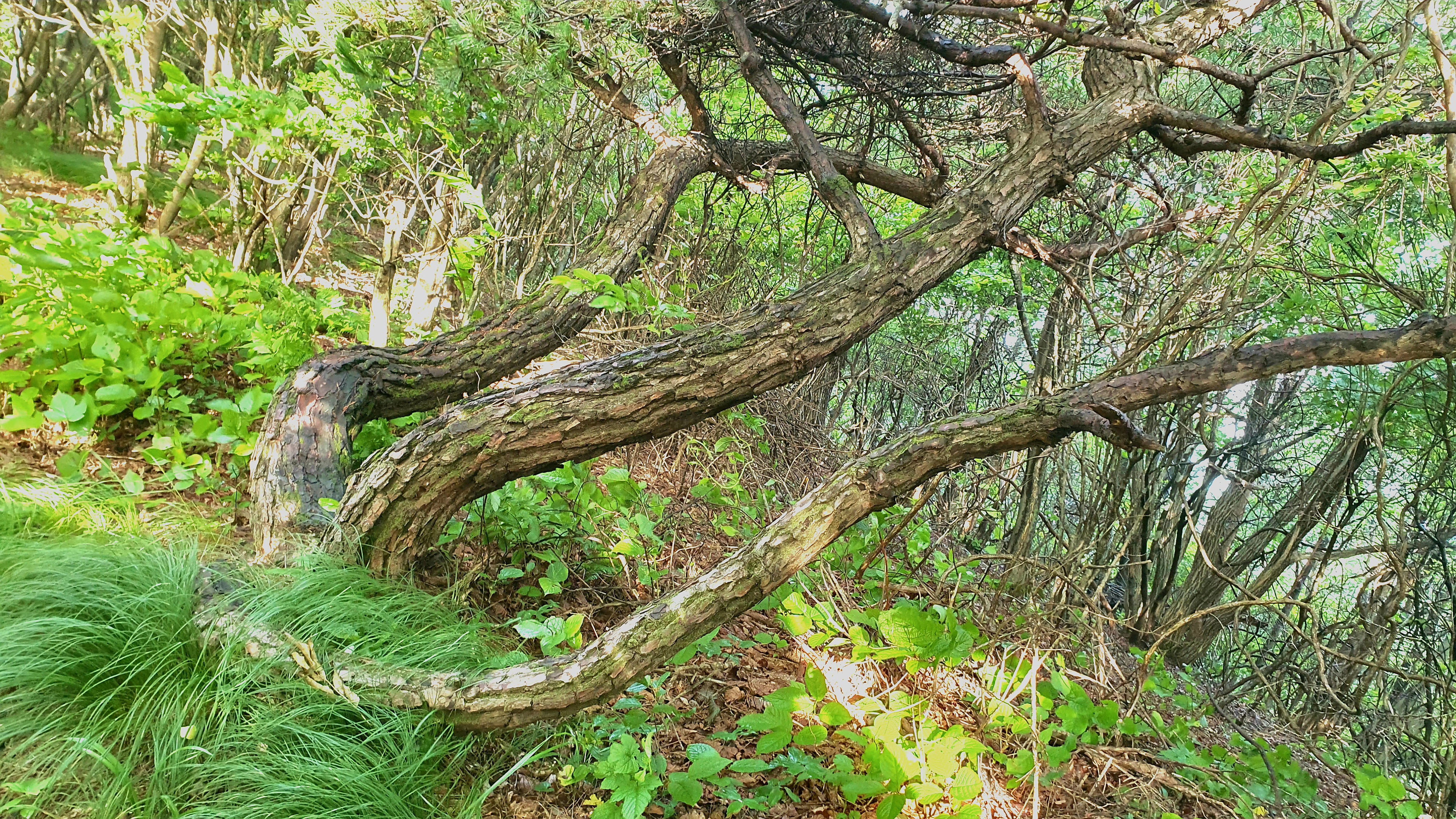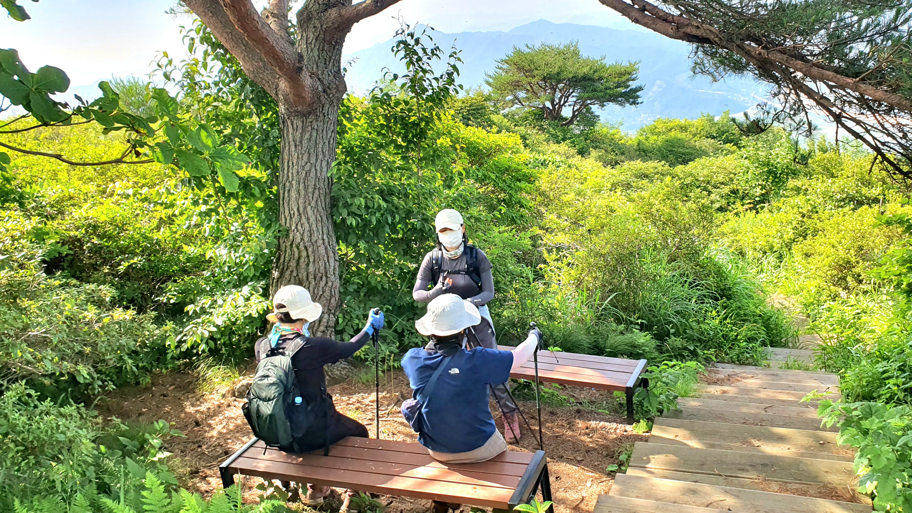 08:47 신선대로 내려가는 철쭉군락지 길 정자소나무 아래 벤치
