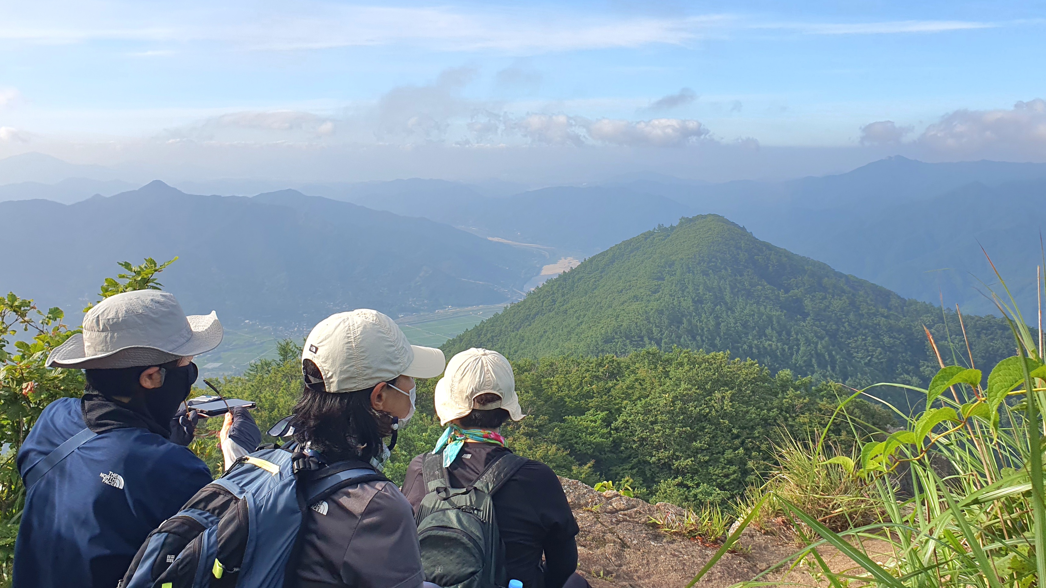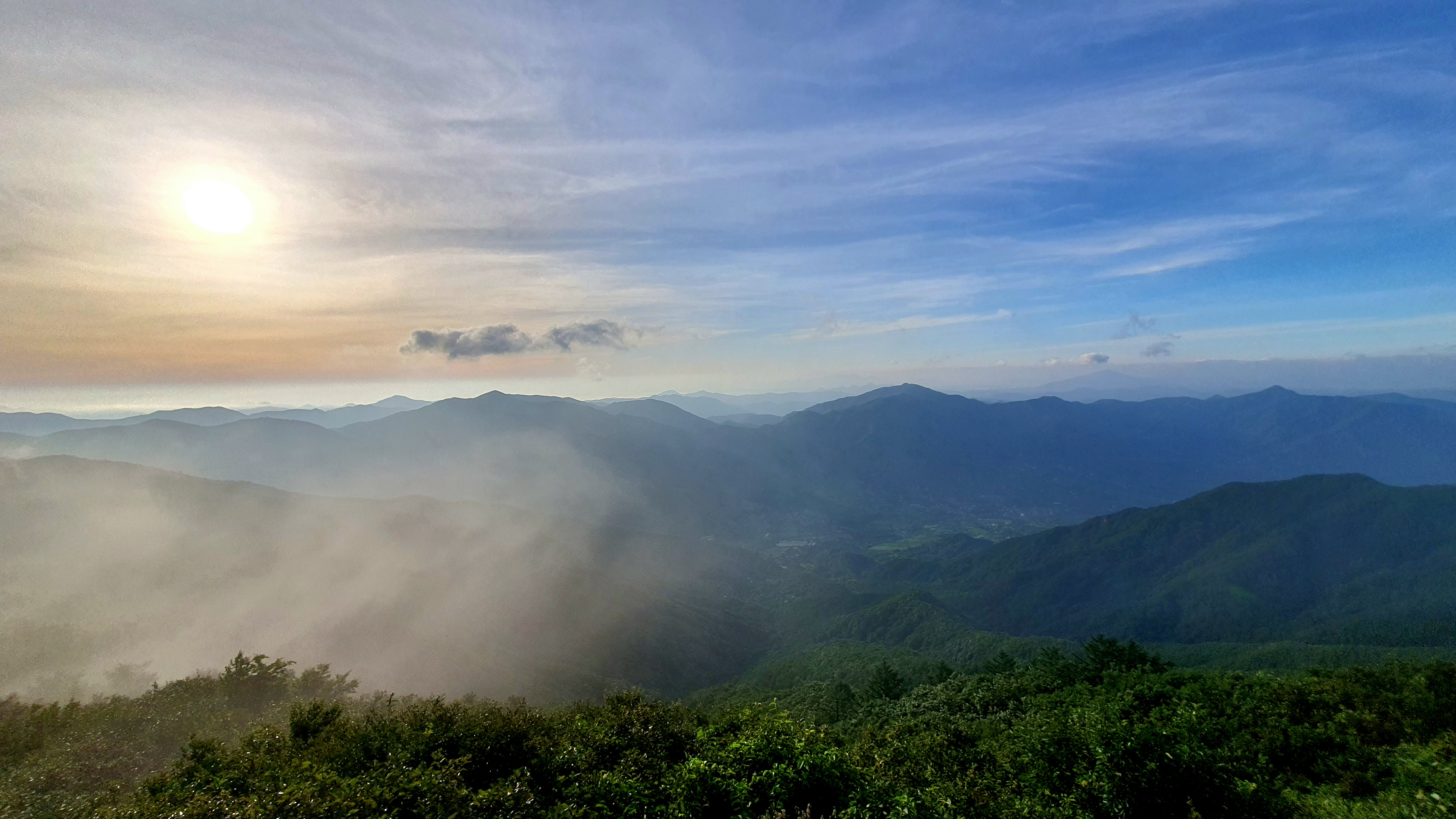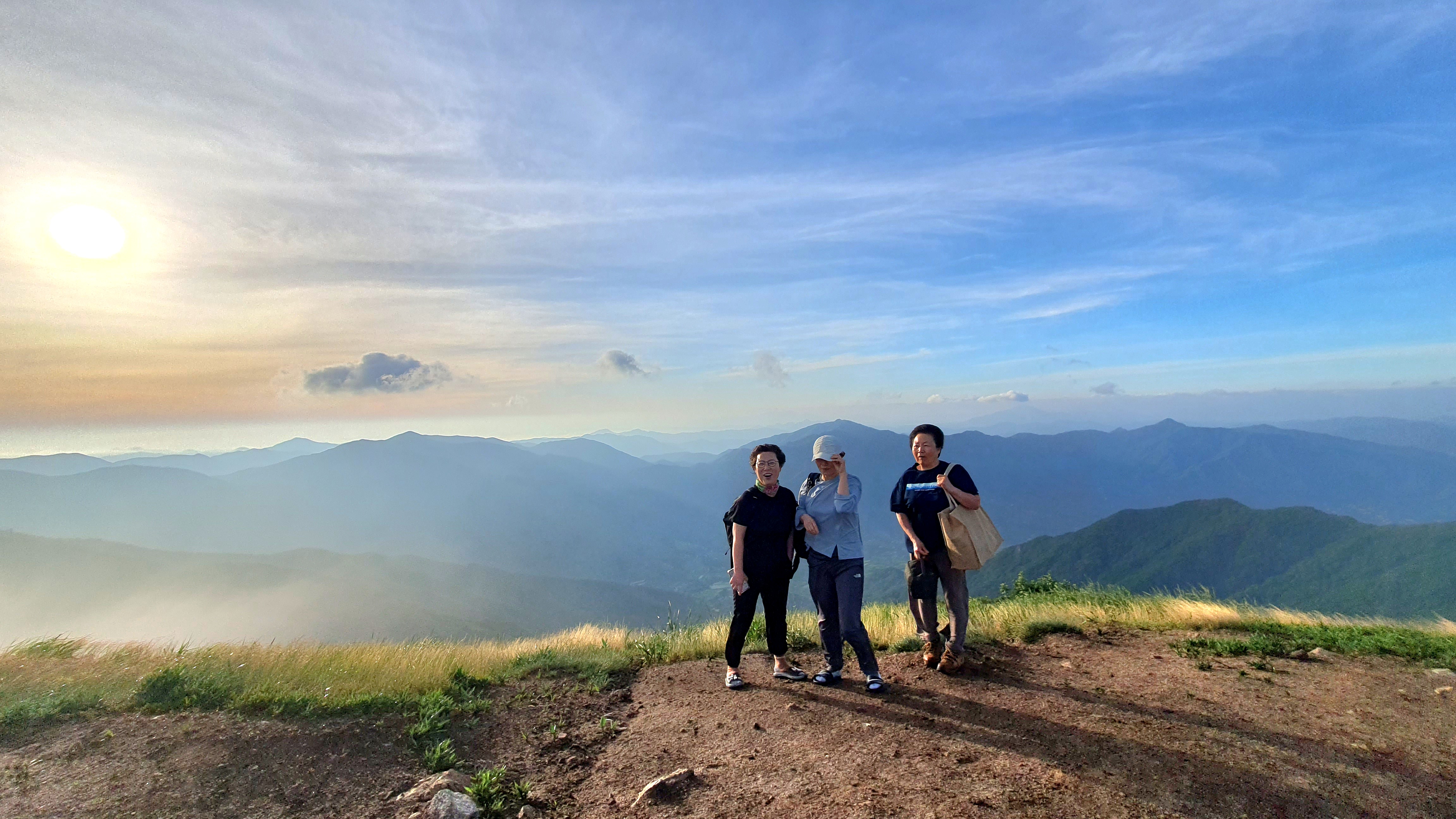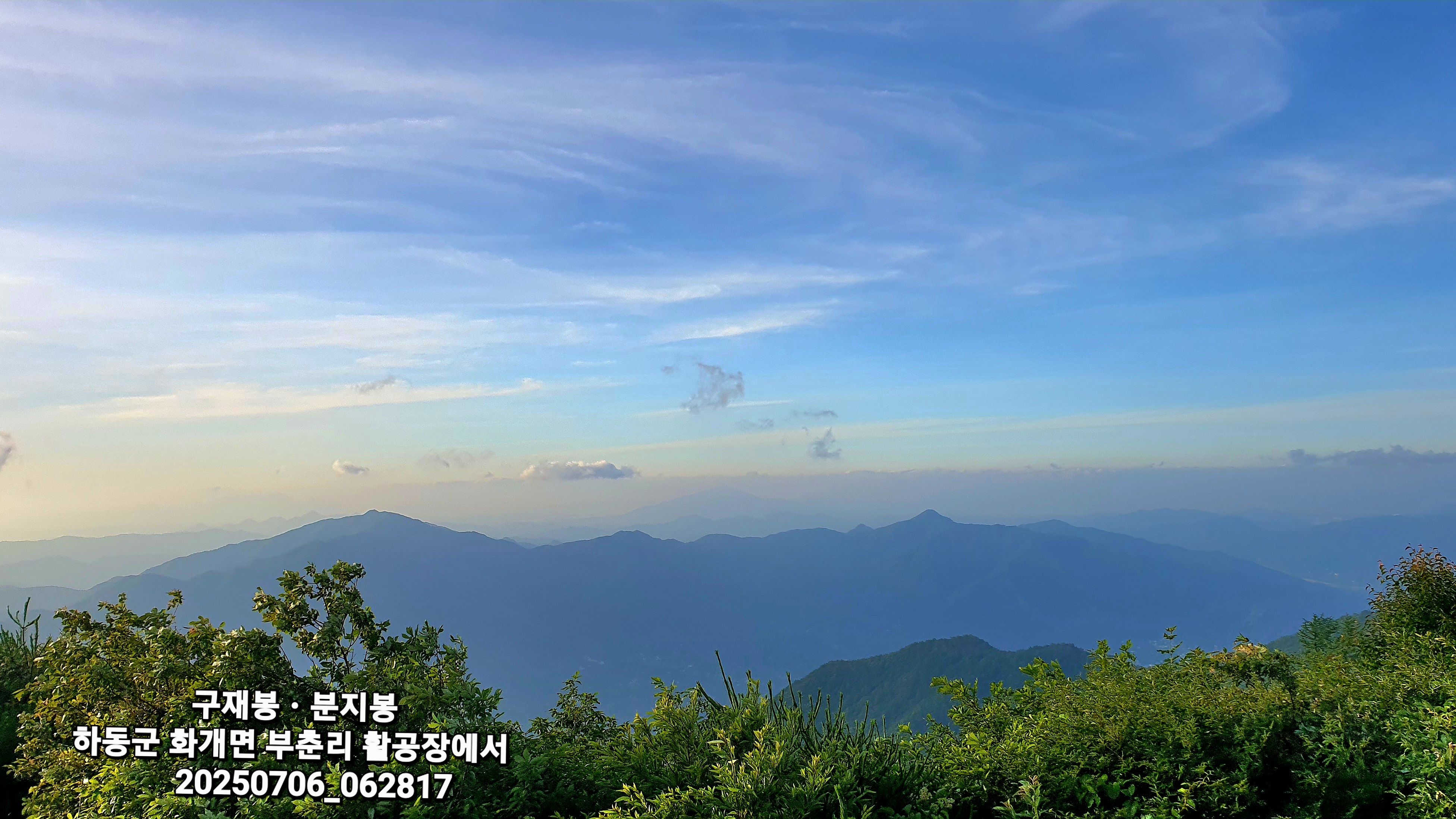 06:28~06:32 활공장 투어 : 하동군 화개면 부춘리 활공장에서 바람이 세차게 불고 추워서 한 여름인데도 오래 서 있지 못하는 상황에서 구재봉과 분지봉을 이어주는 능선을 바듯이 핸펀에 담는 것을 시작으로 몇 카드 담는 투어 후