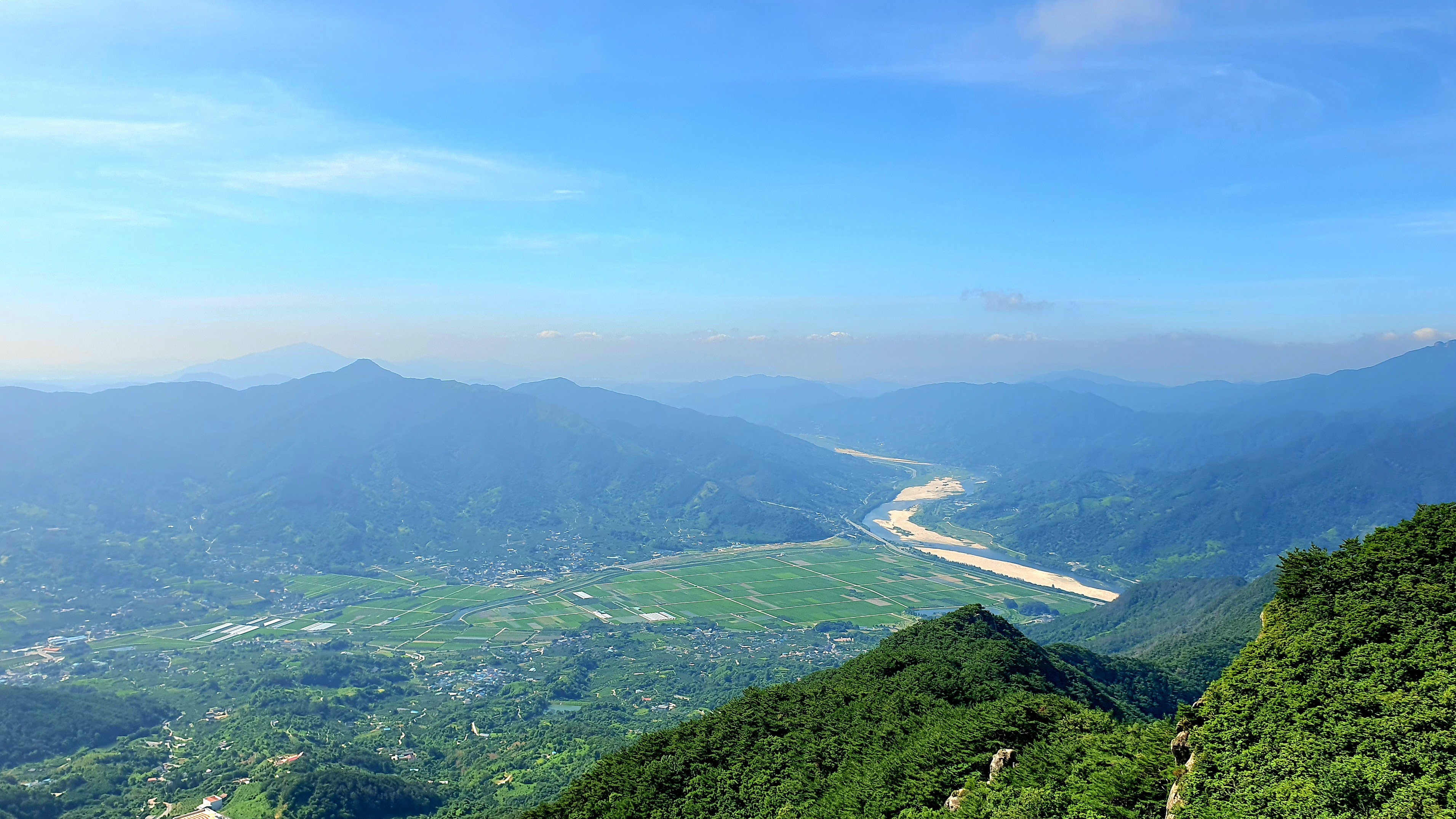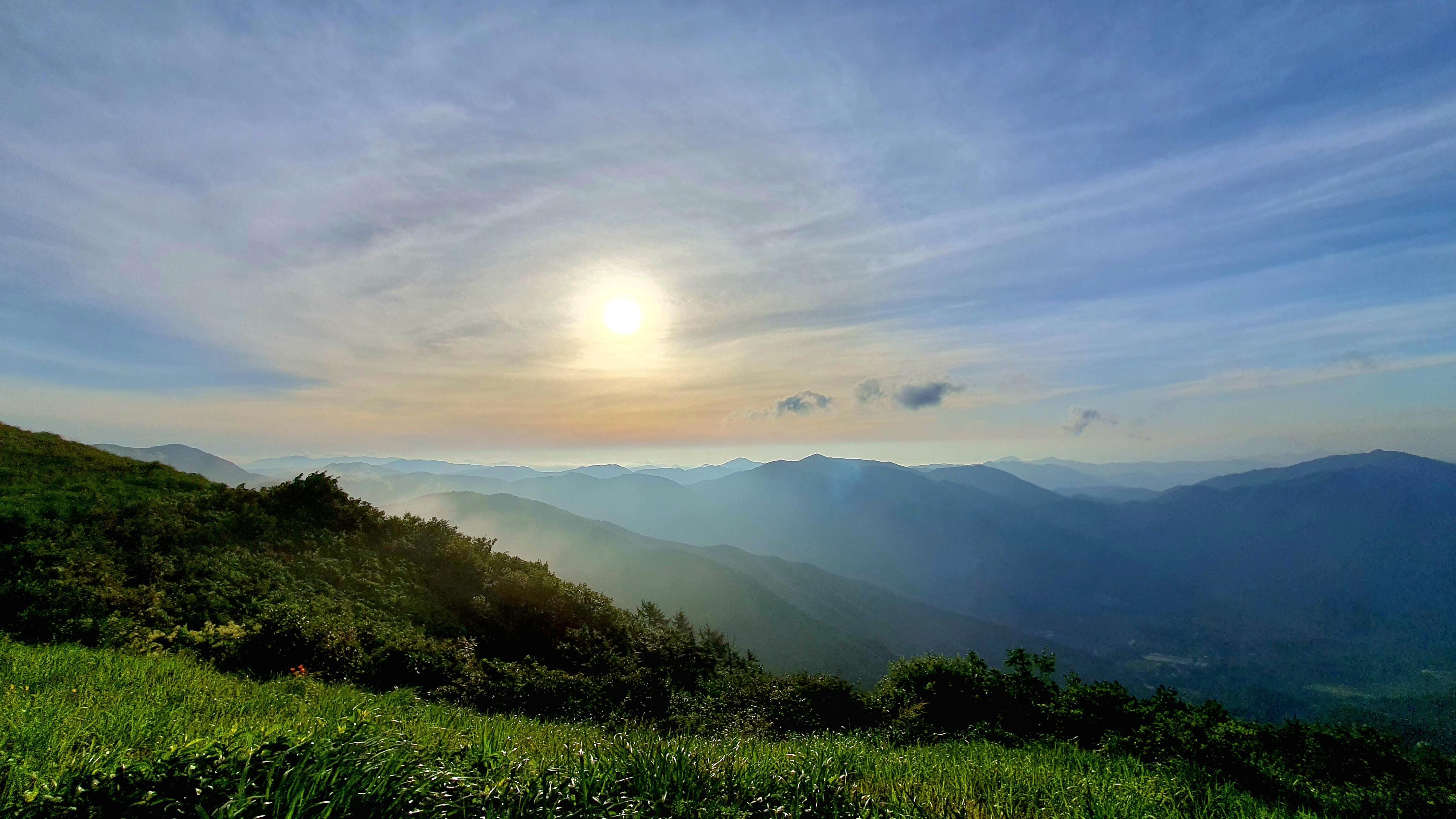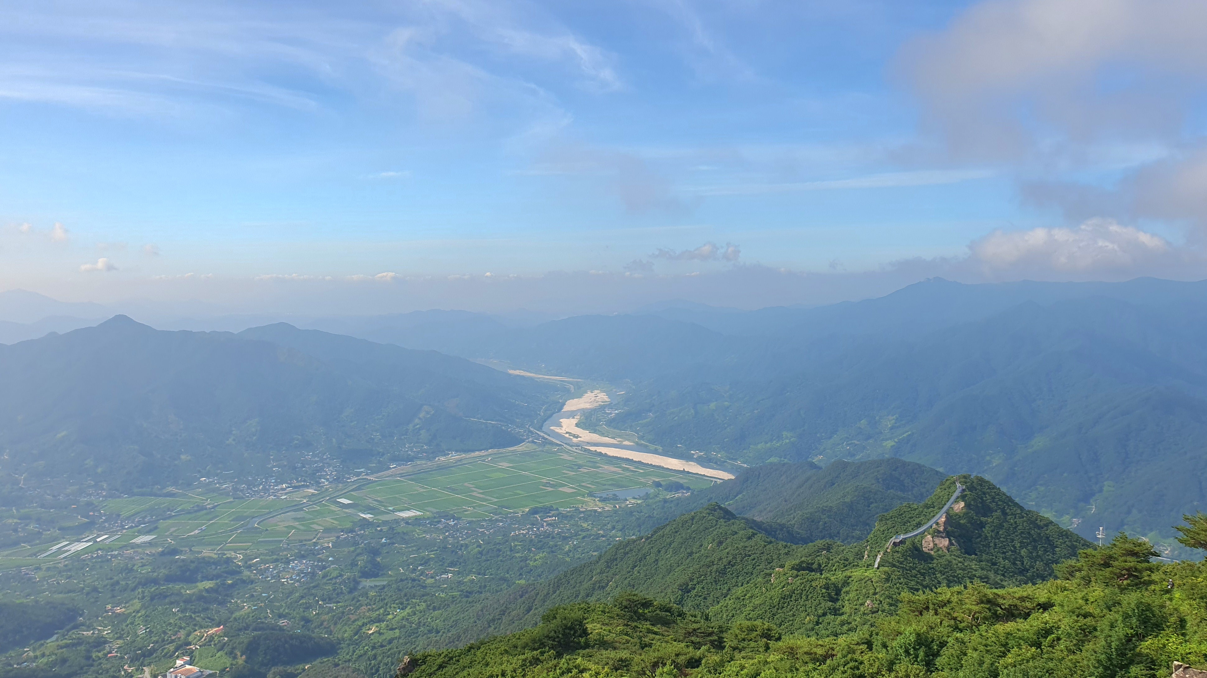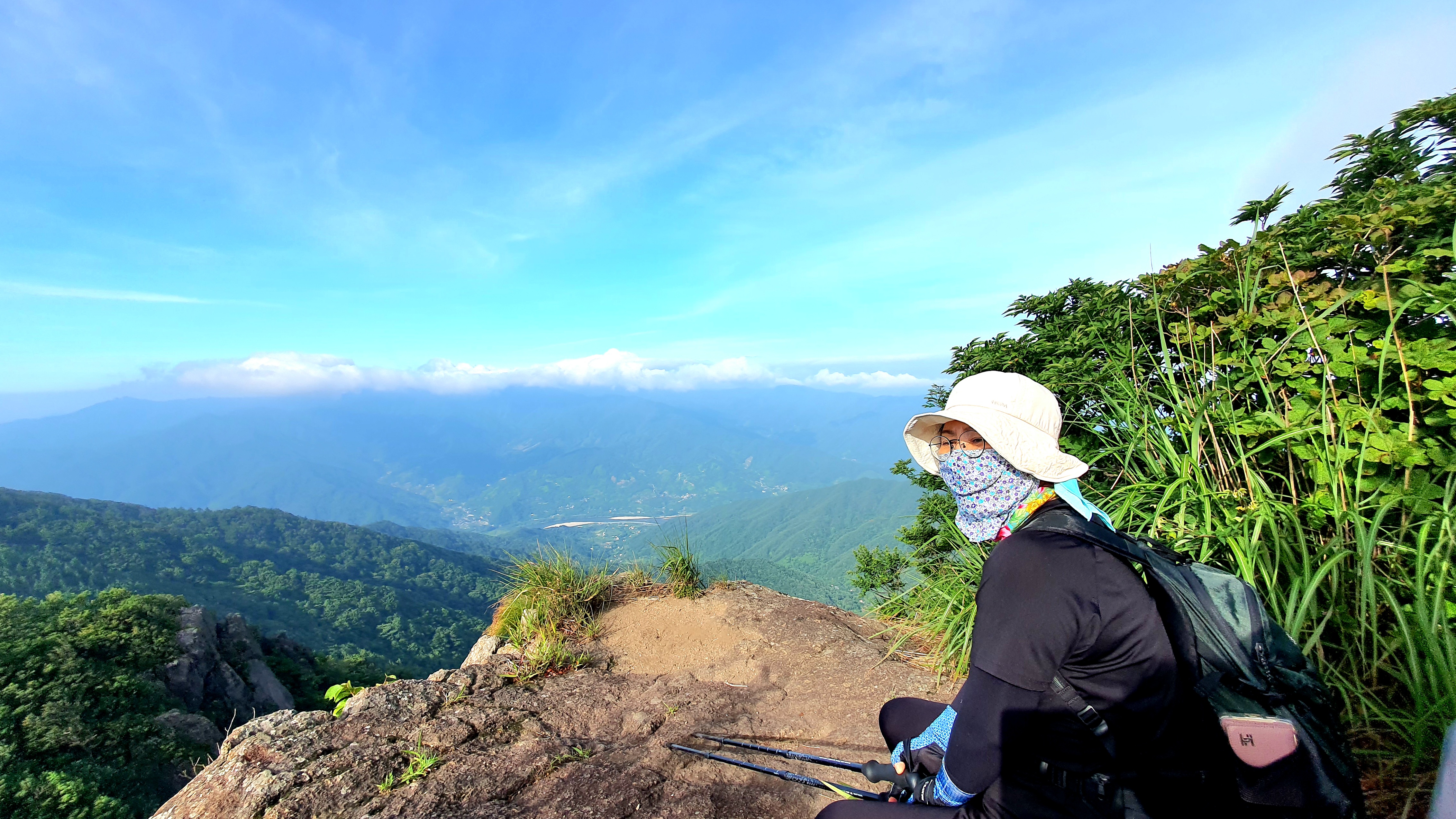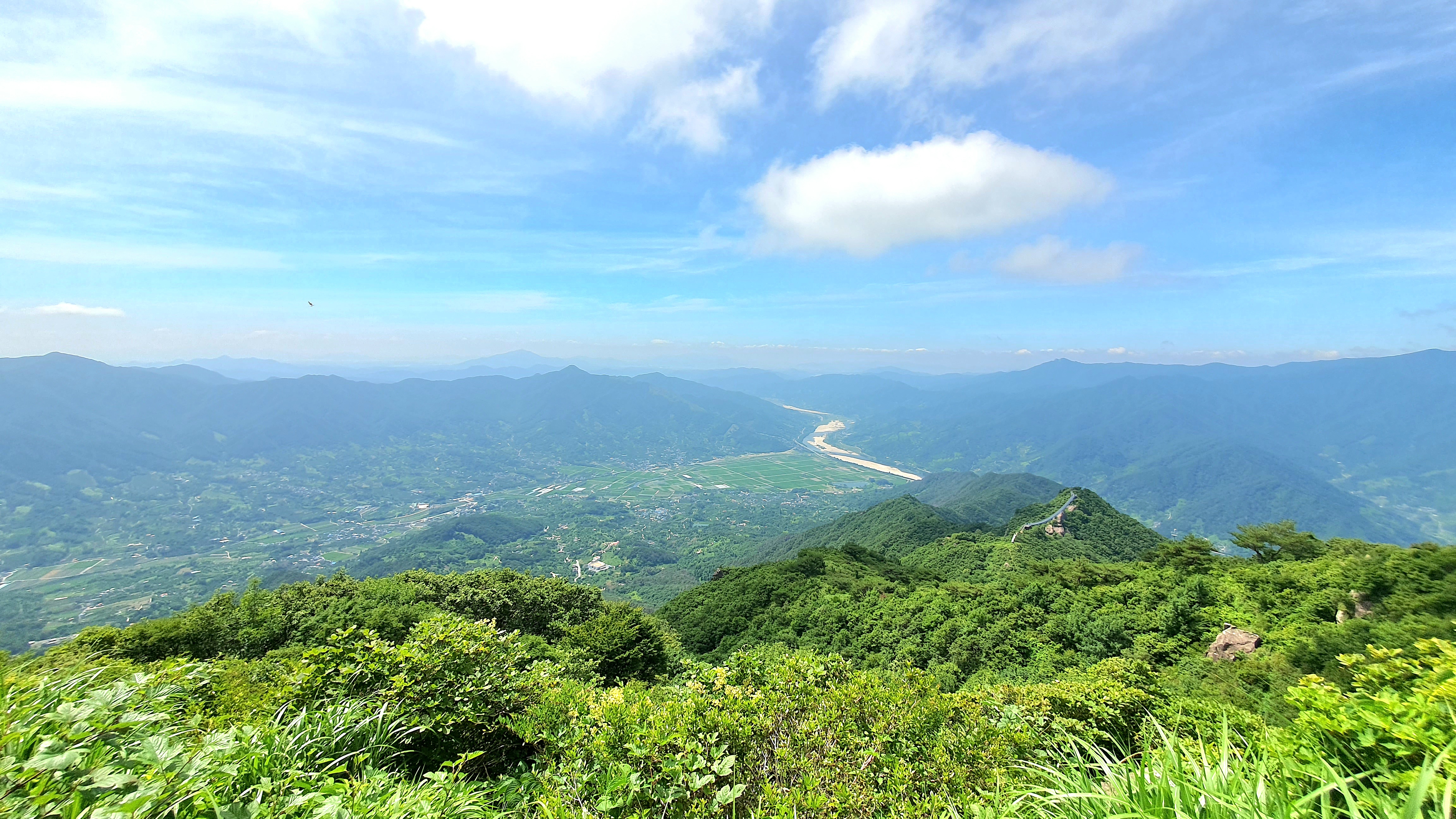 06:28~06:32 활공장 투어 : 하동군 화개면 부춘리 활공장에서 바람이 세차게 불고 추워서 한 여름인데도 오래 서 있지 못하는 상황에서 구재봉과 분지봉을 이어주는 능선을 바듯이 핸펀에 담는 것을 시작으로 몇 카드 담는 투어 후