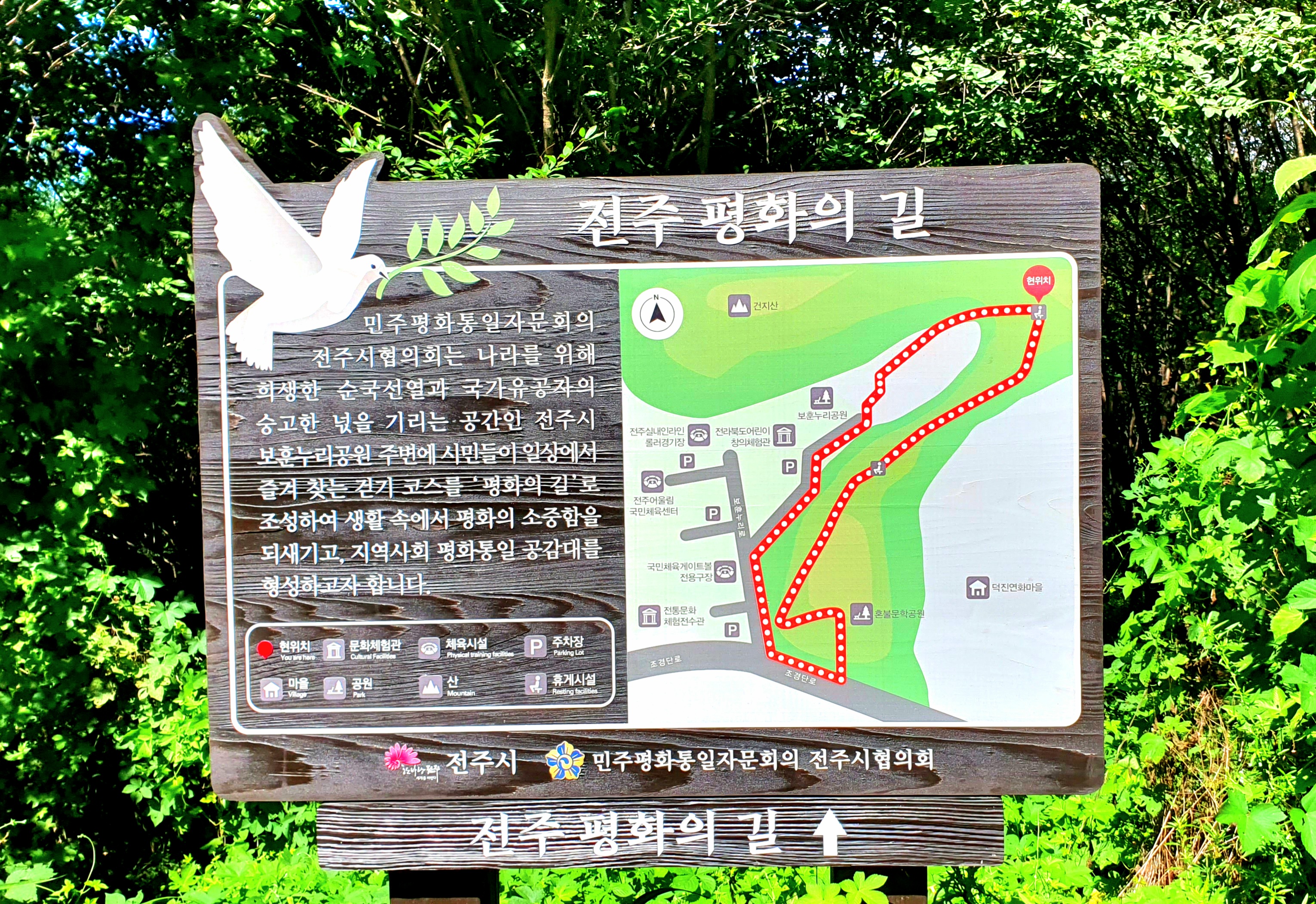10:28에 도착 건지산 장군봉으로 갔다가 다시와 오송제방향으로 가다가 장군봉으로 가도 이정표가 없어 쉼터로 다시 돌아나오는 길에 운동하는여자분은 전혀 모르는 눈치이고 트레킹하는 남자분은 장군봉으로 가면 된다기에 지도를 보여줘도 맞다기에 그냥 다시 평화의 길 11:09에 삼거리로 와서 길을 찾았는데 아뿔사 그만