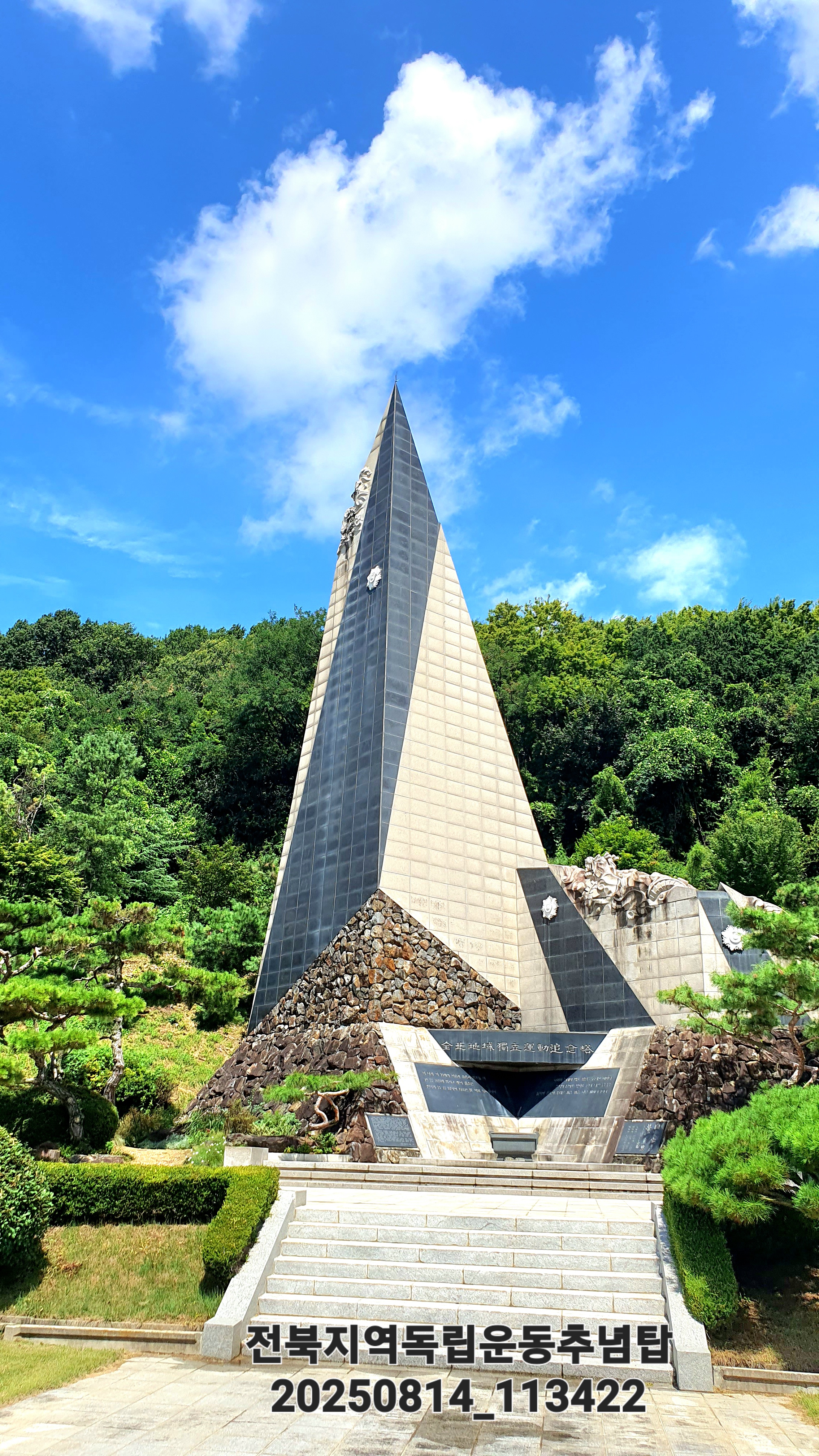 이 塔은 도내 방방곡곡에서 요원의 불길 처럼 일어 난 自主獨立의 일념이 하늘 높이 치솟아 승화하는 강인한 民族精神을 표상하고 있으니 전북인의 愛鄉 愛國하는 정신적인 지주로서 온 누리에 영원토록 빛날 것 이다.