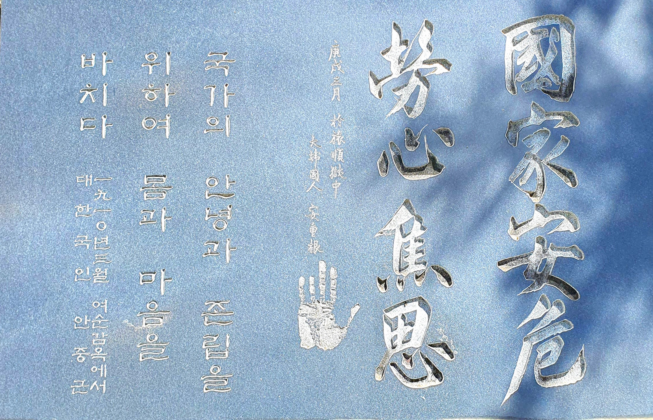 오석은 샌드블라스트 기법으로 대한민국 국난의 역사를 담아내었다.