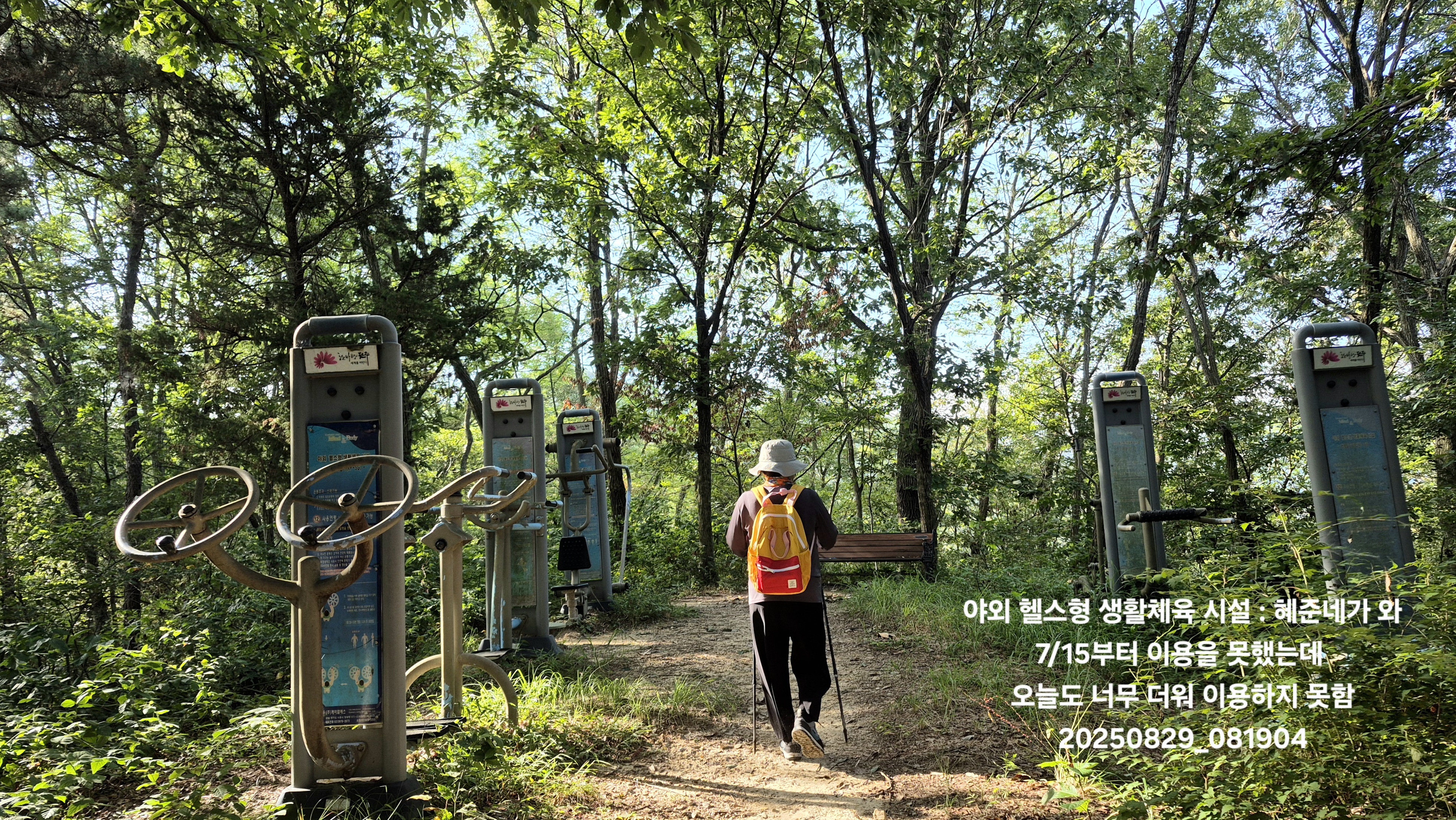 08:19 야외 헬스형 생활체육 시설 : 혜준네가 와 7/15부터 이용을 못했는데 오늘도 너무 더워 이용하지 못함