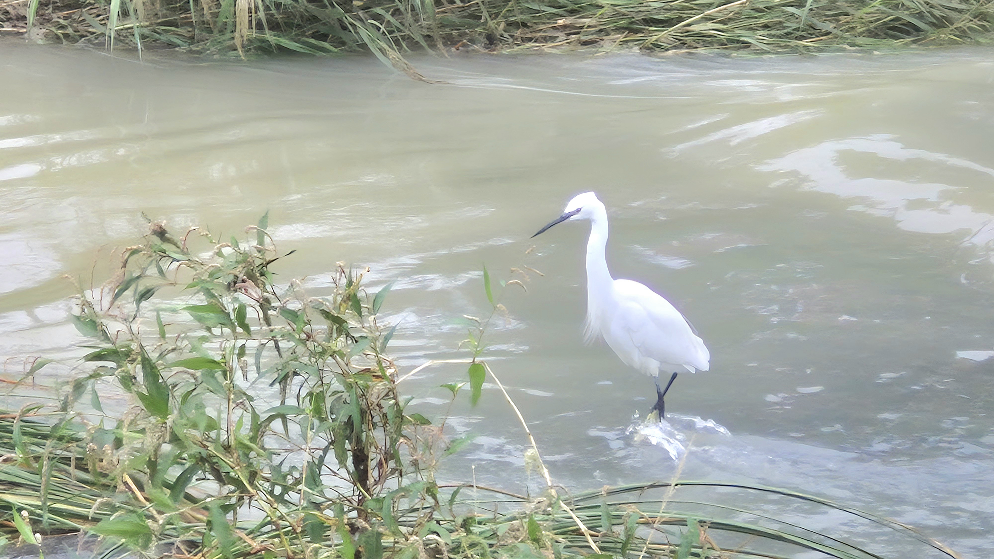 10:19 가련교 위 징검다리의 수위가 넘쳐 가리내로로 오르다