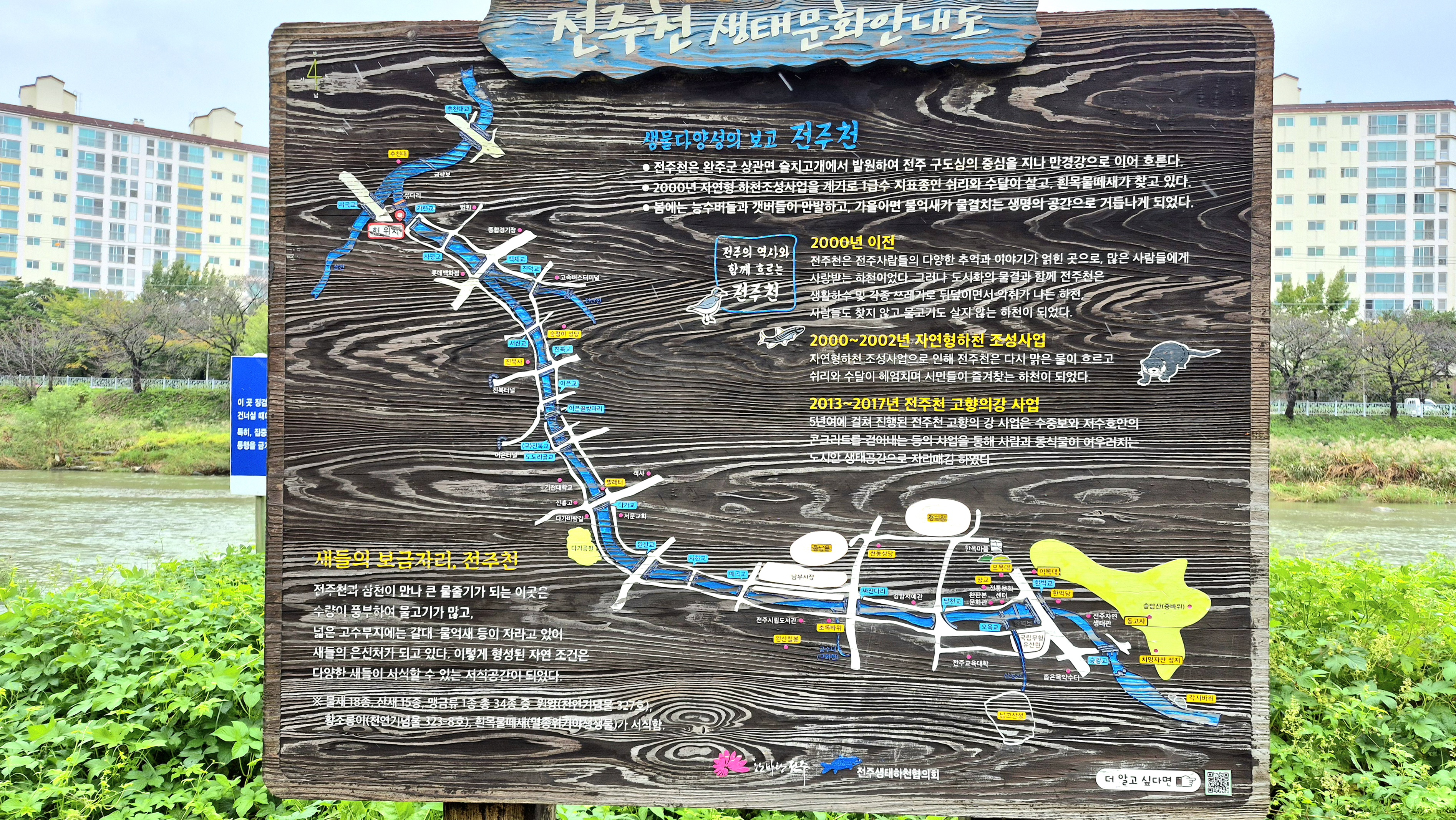 신건산길 변 건산천 태진교 ~ 백제교 1km ~전주천ㆍ삼천천 합류 치류정 2km 합 3km