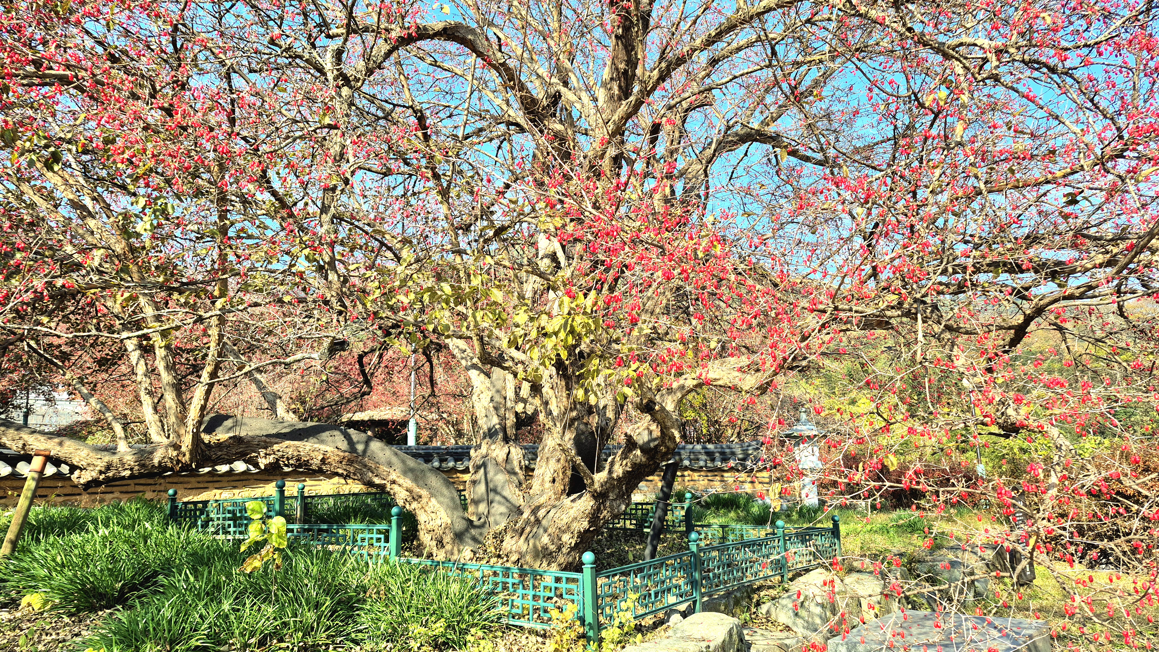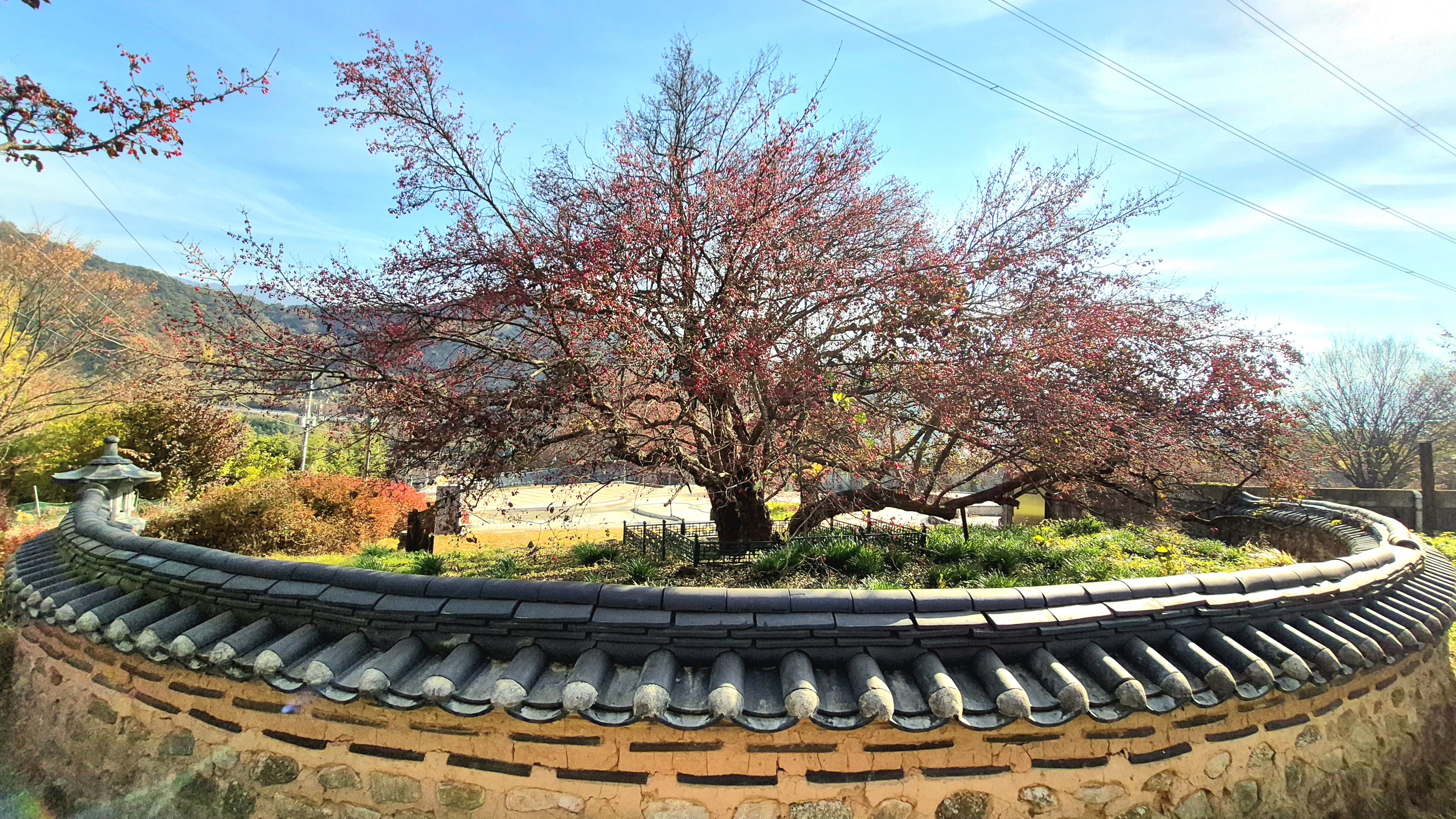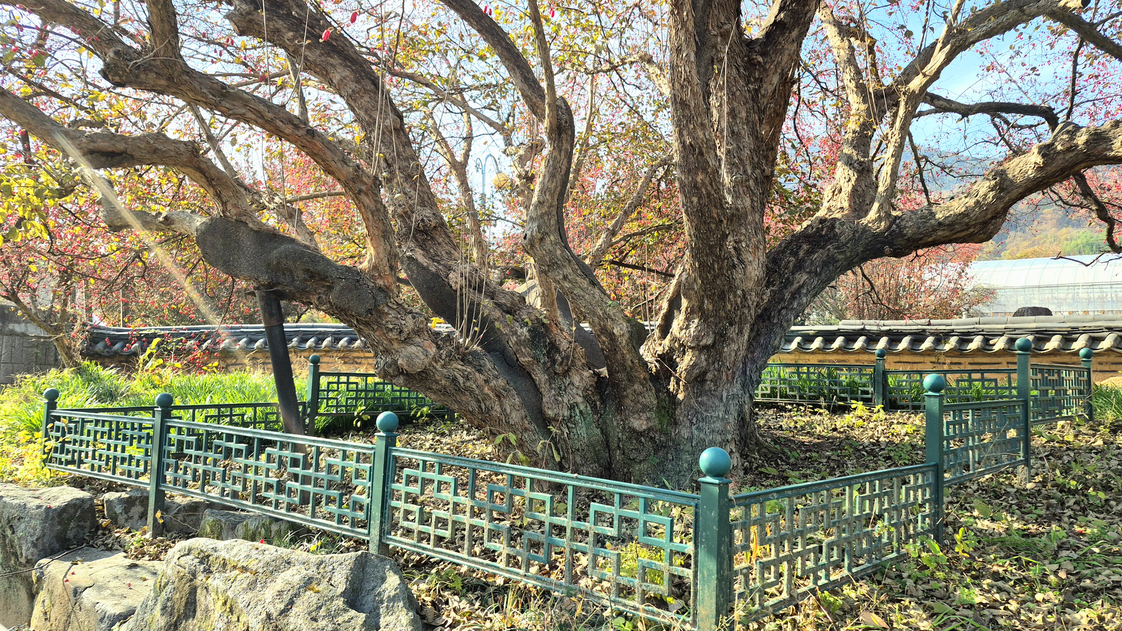 이 산수유 나무는1000년 전 중국(山東省)에서 가져와 우리 나라에서 가장 먼저심은 산수유나무 시조이다.