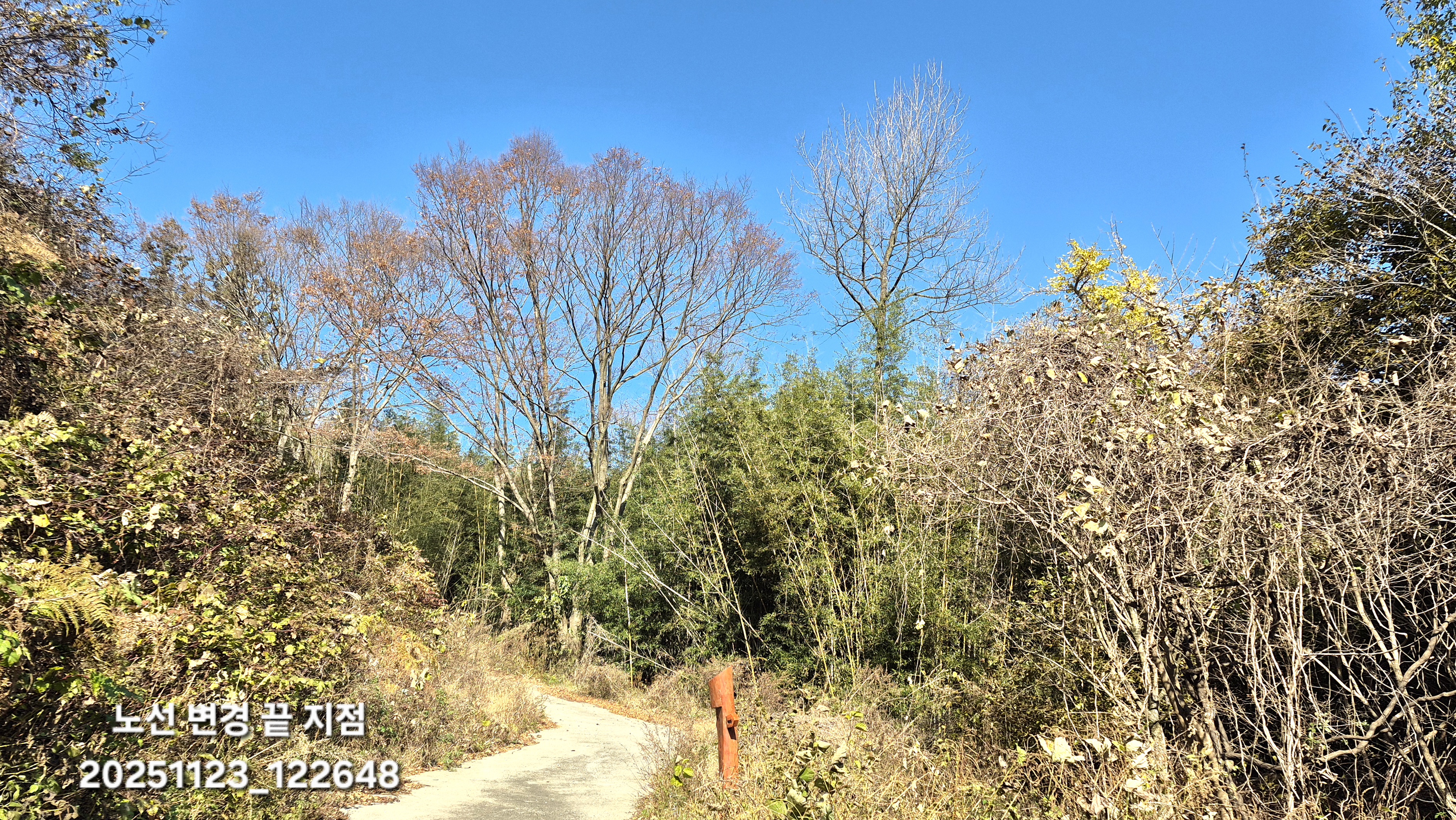 12:20 사방댐으로 인해 노선이 시멘트길로 변경된 시작점