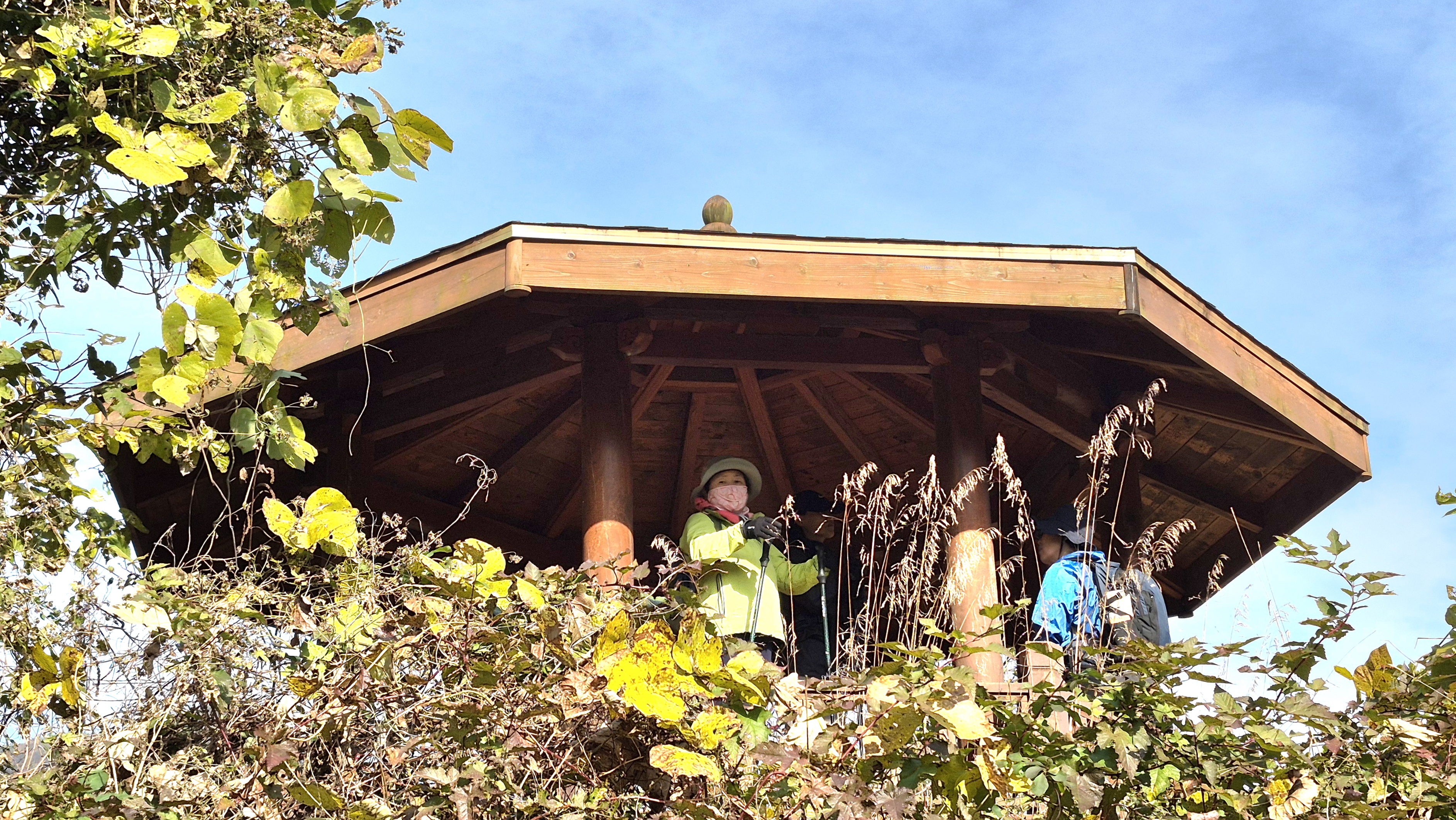 11:56 삶은계란, 사과, 단감과 과자 안주 삼아 얻어 온 산수유막걸리로 오르막 마지막 가쁜숨을 진정시킨다.