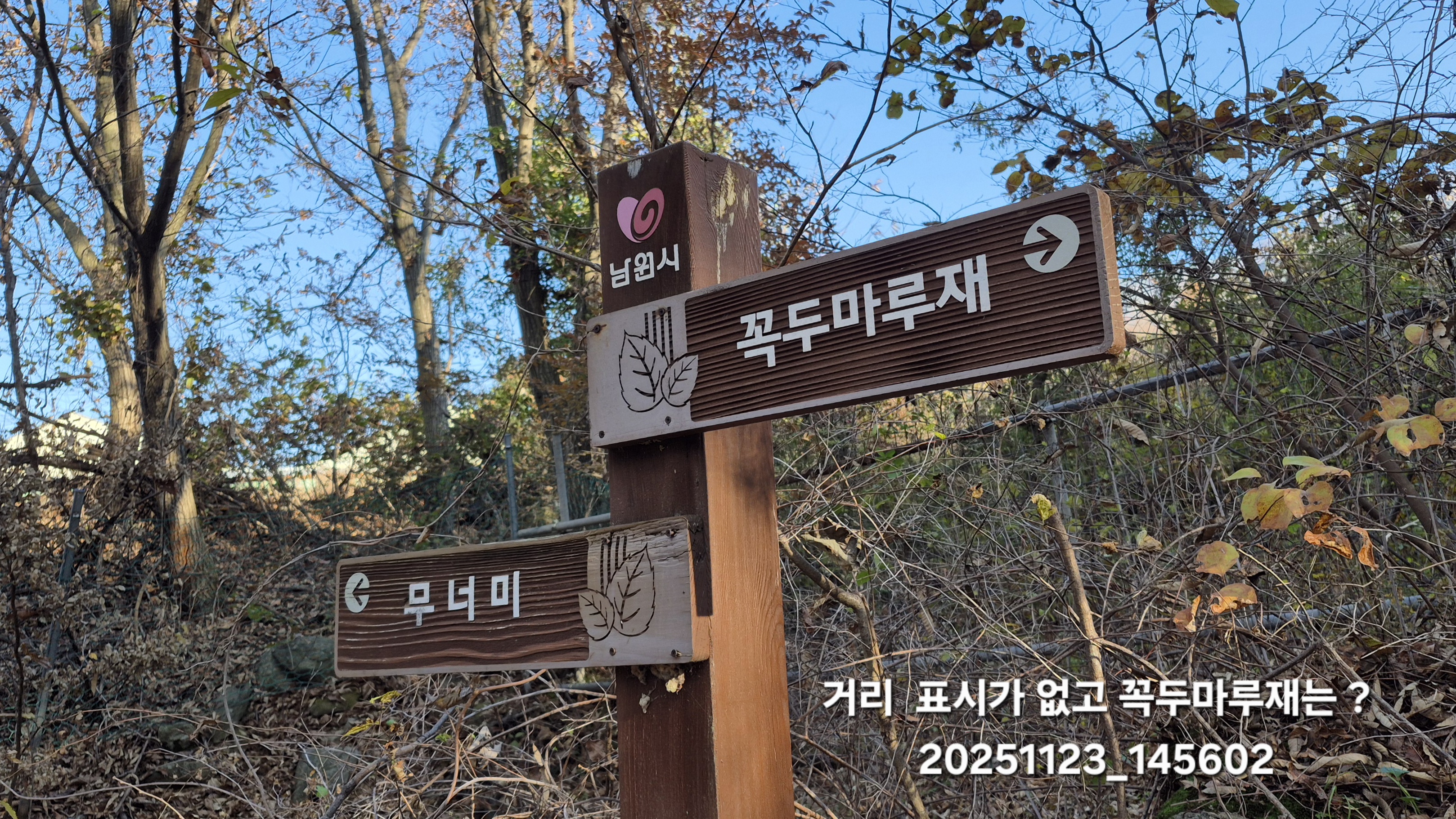 무너미라며 표시해 놓고 또 무너미로 가라는 표시가 있다