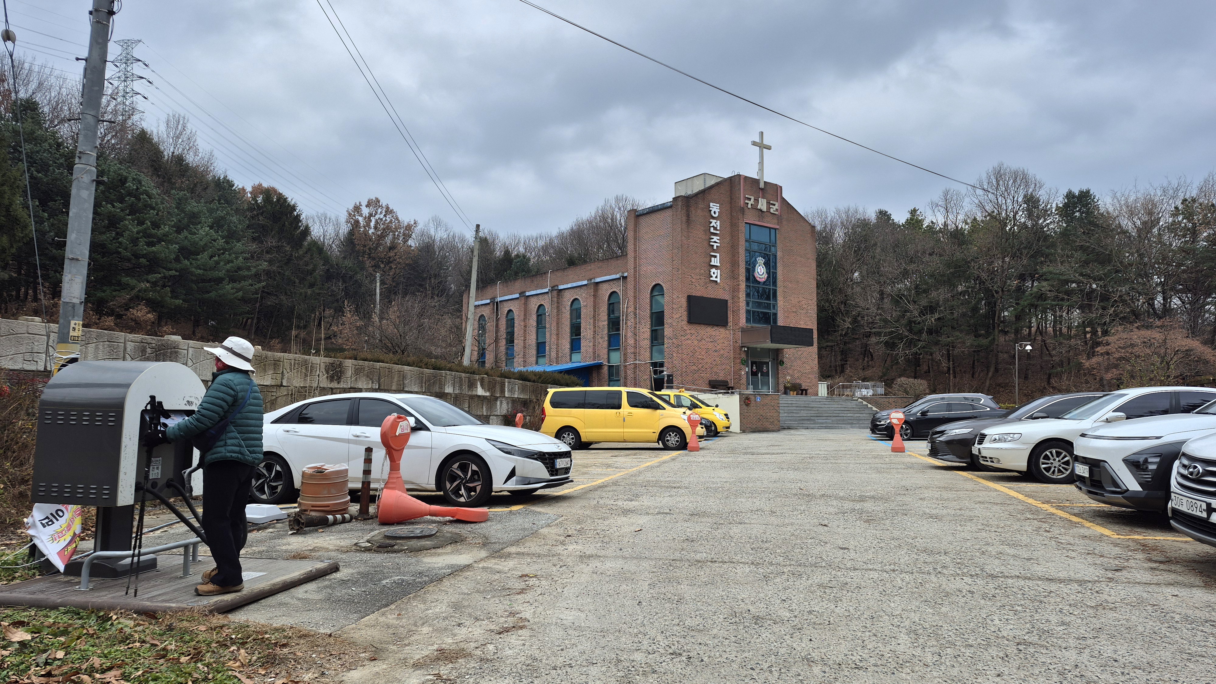 소리개재 구세군동전주교회 주차장 : 오늘부터 방학인지 빈 주차공간이 보인다