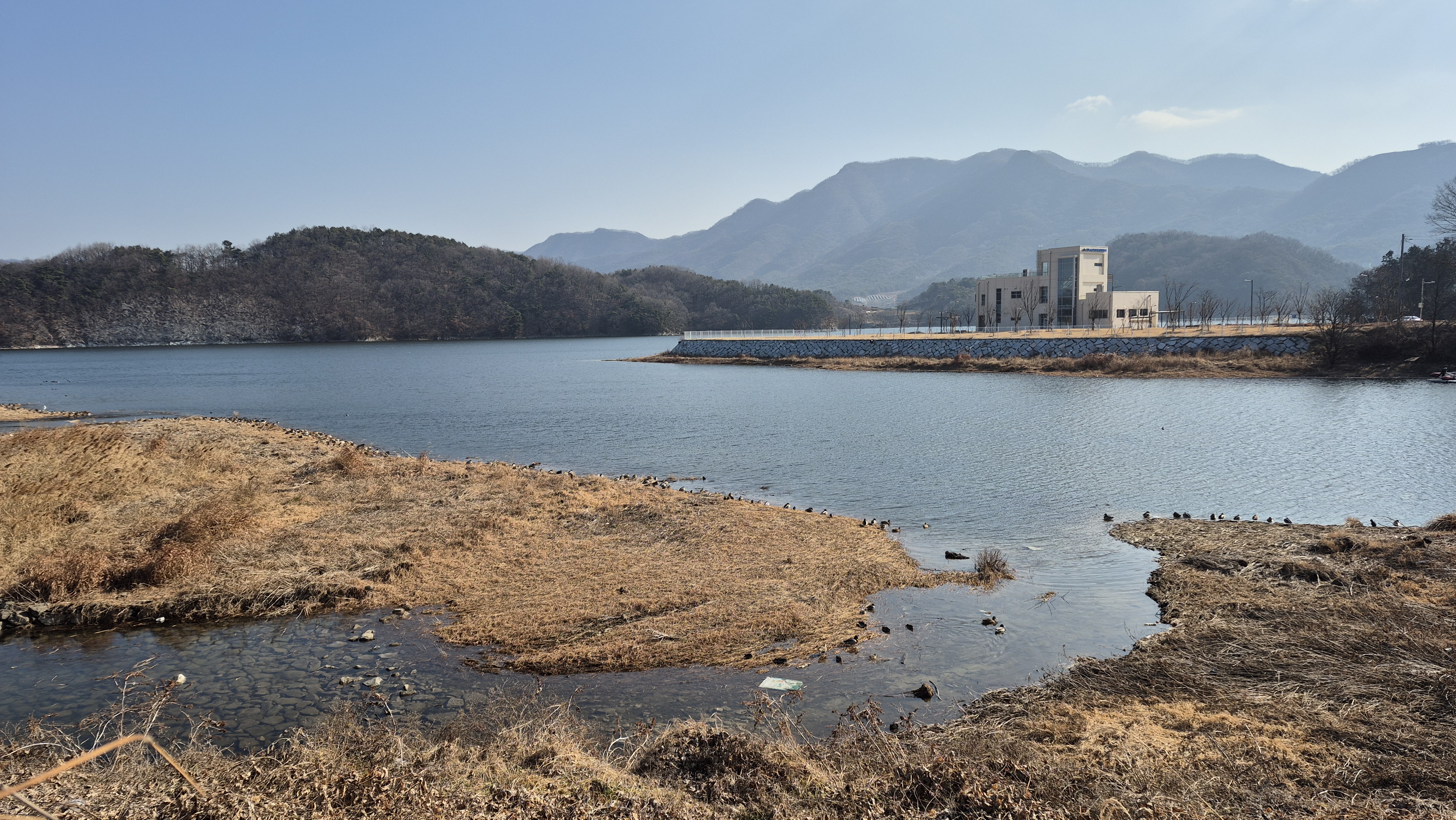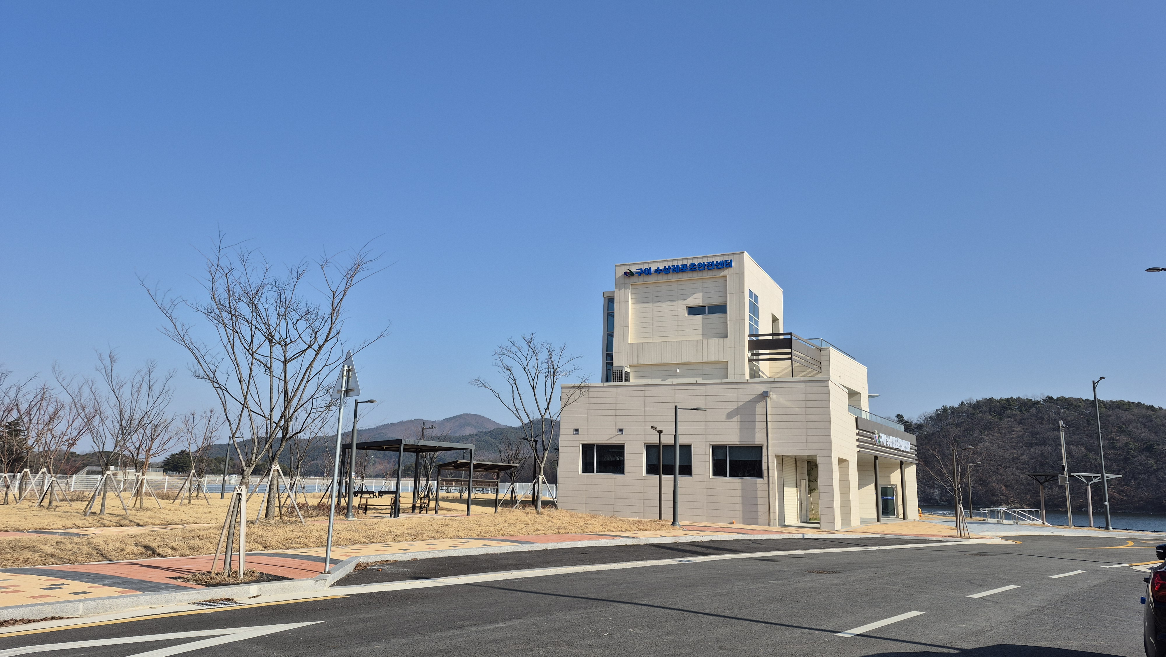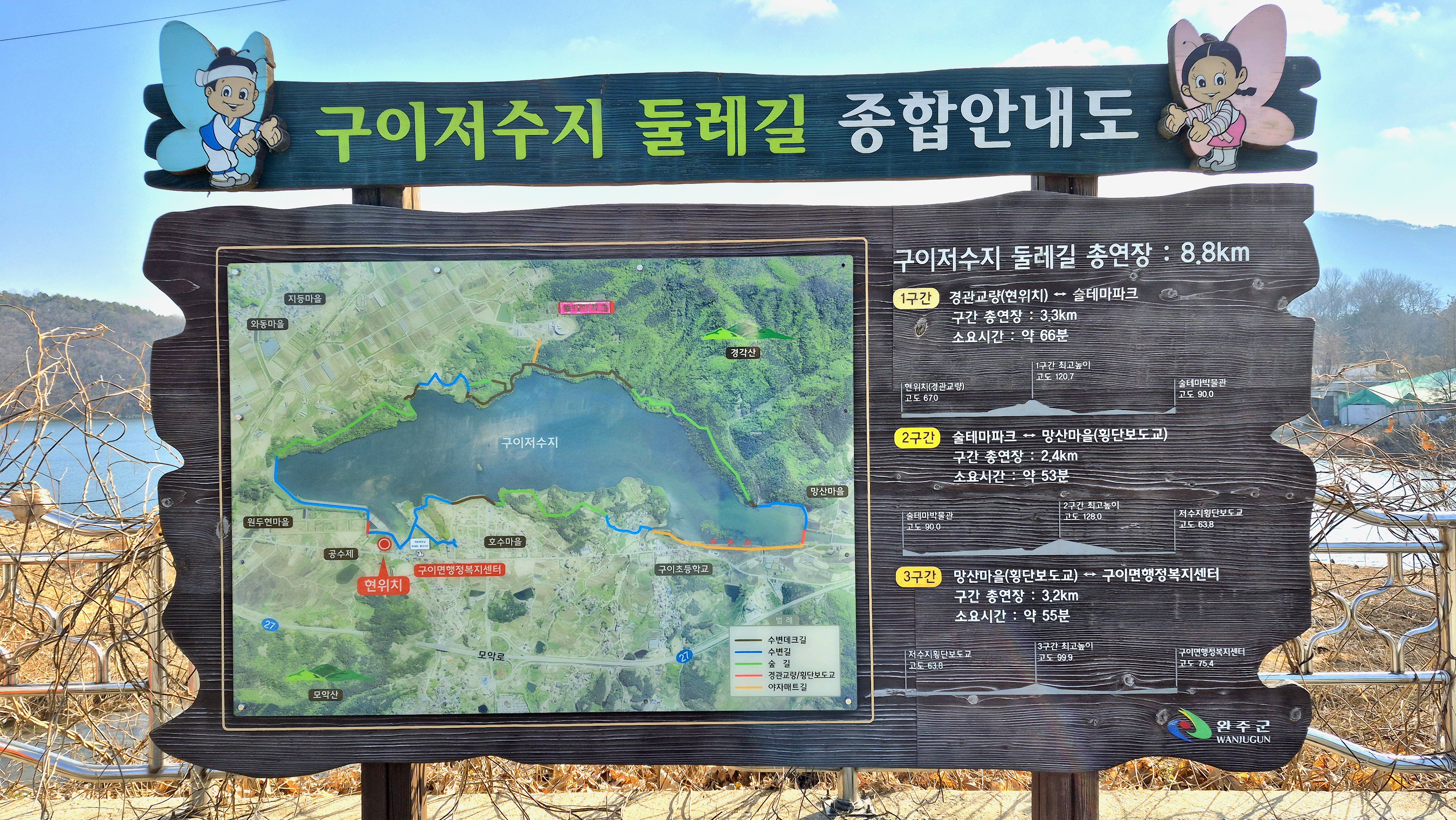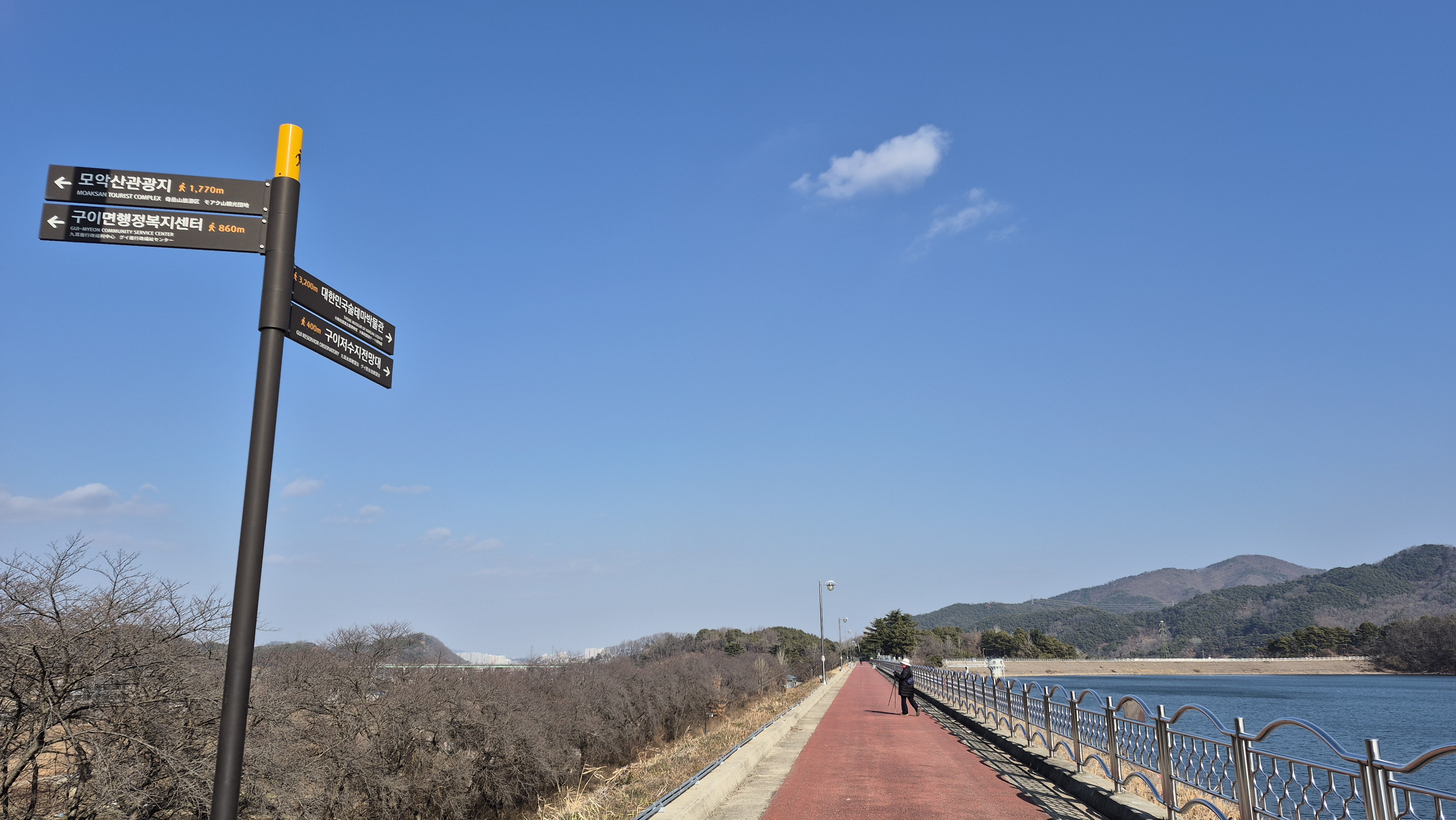 구이수상레포츠안전센터 ~ 저수지둑방 ~ 술테마파크 ~ 항가리 공사중인 수변데크 ~ 구이수상레포츠안전센터 8.8km