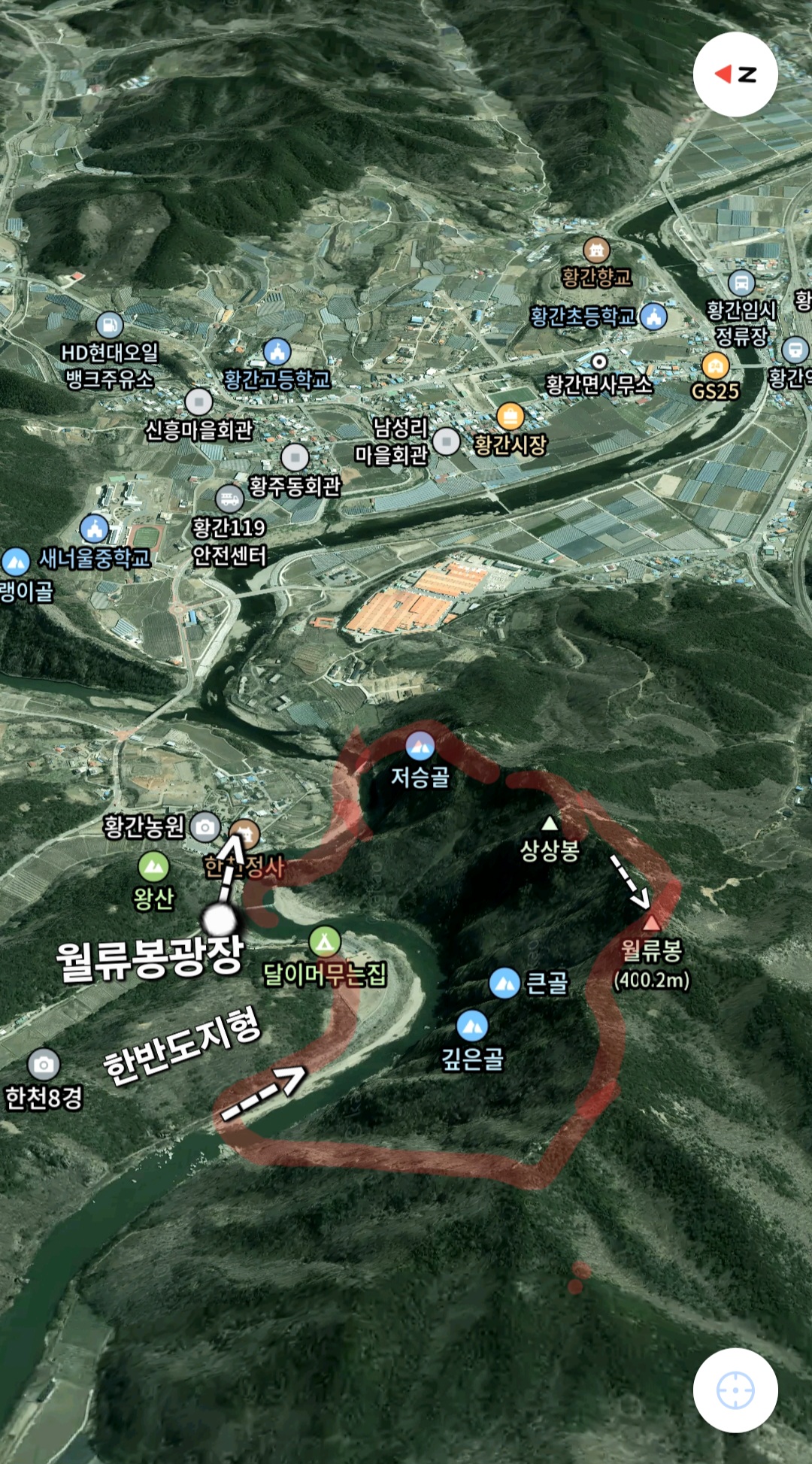 월류봉 정상에서 바라본 한반도지형
