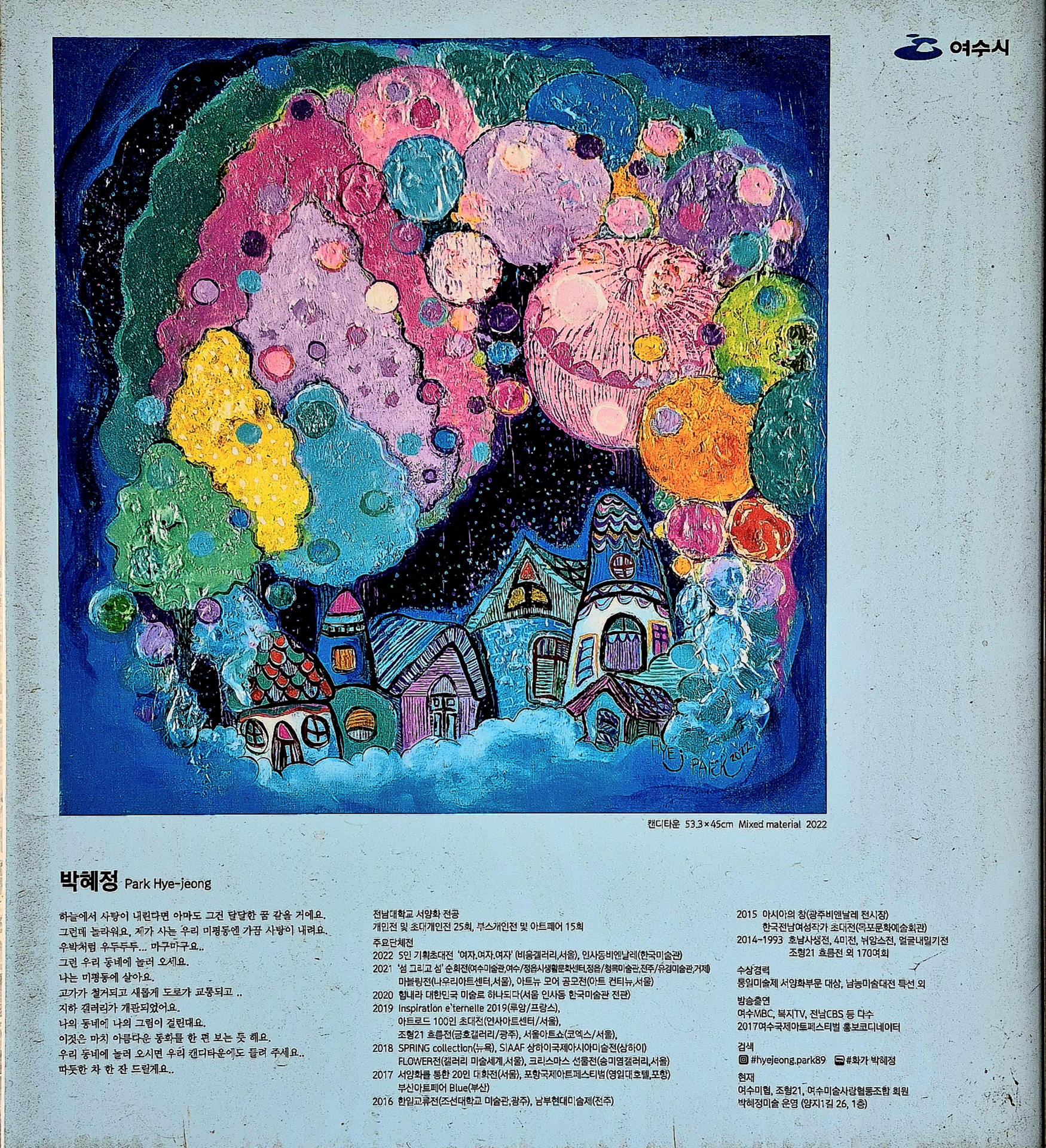 민드래미재부터 여천동주민센터까지 여수지역 예술인들의 작품 20점을 설치하였고 여기에는