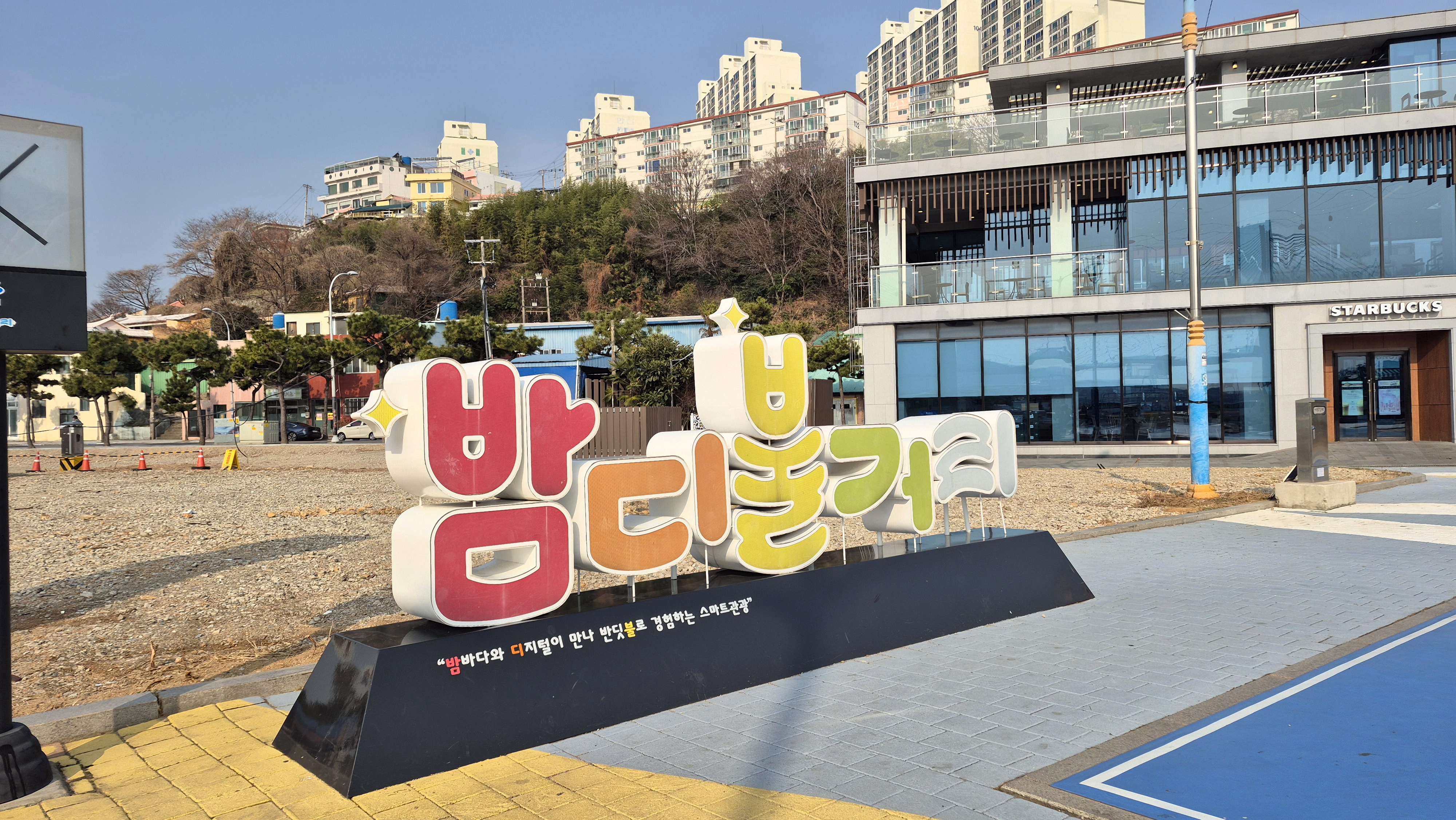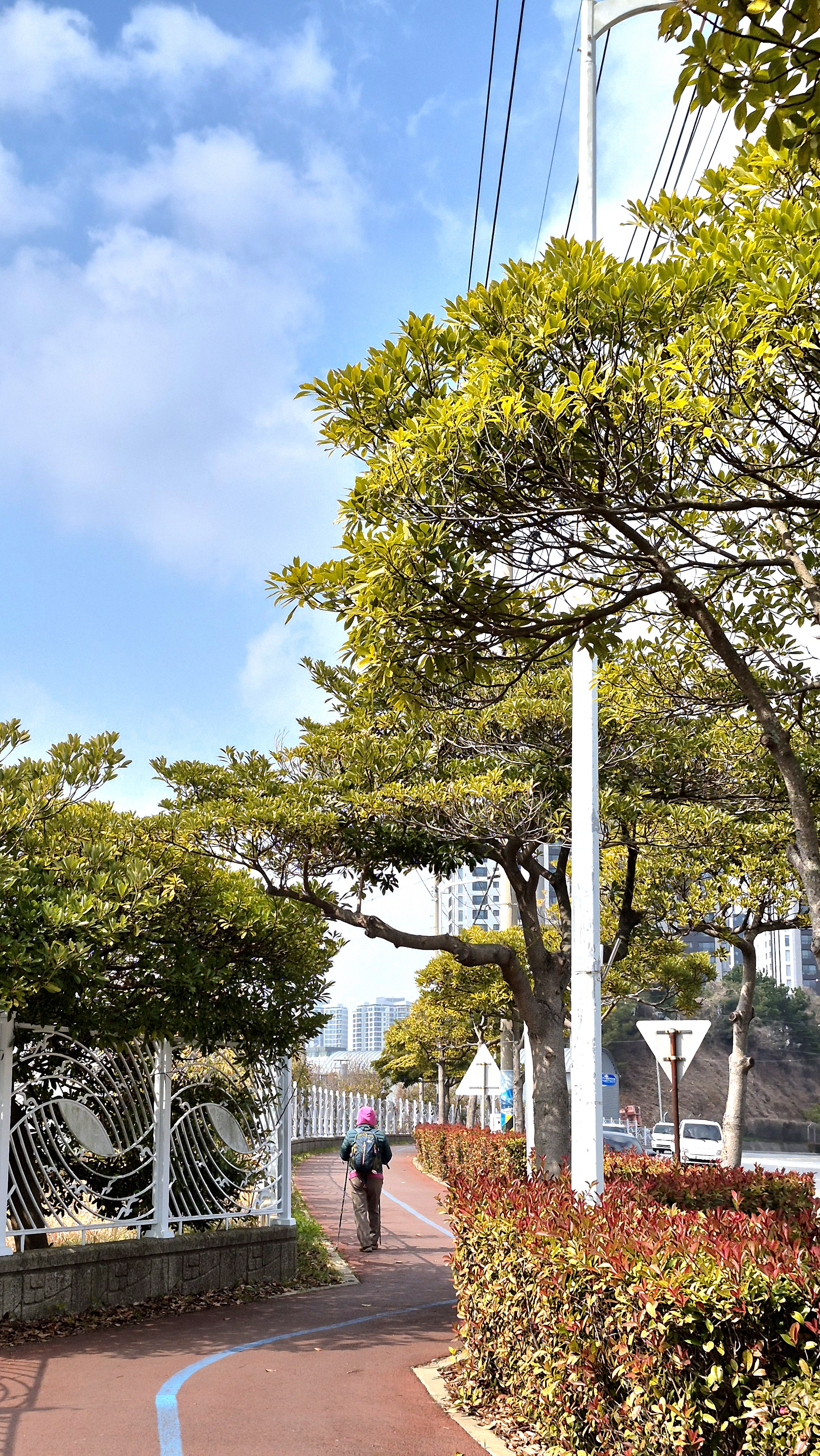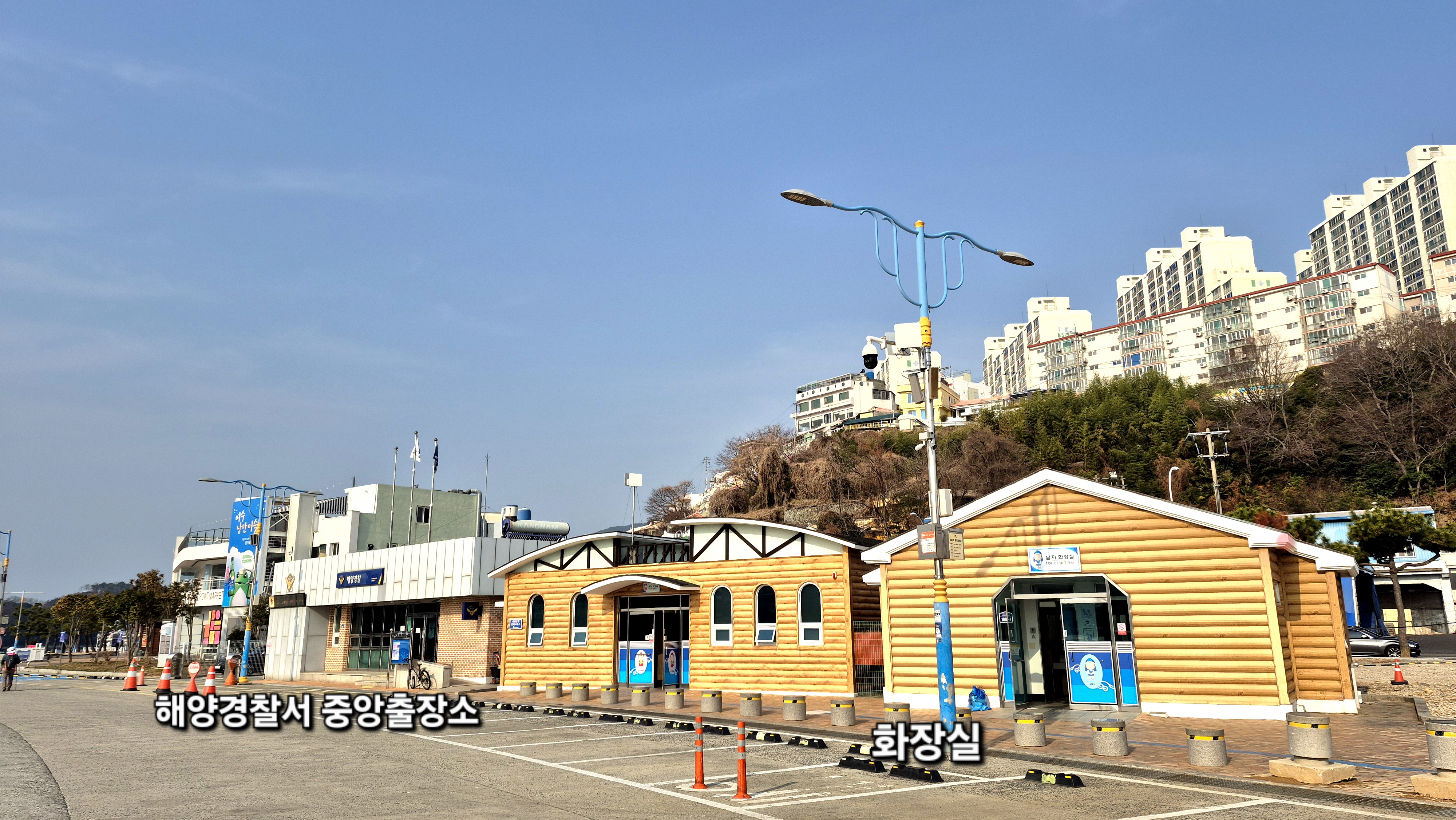 09:26 한신아파트가 올려다 보이는 해양경찰 . 해양공원 화장실 옆 가로등 큐알코드에서 출발
