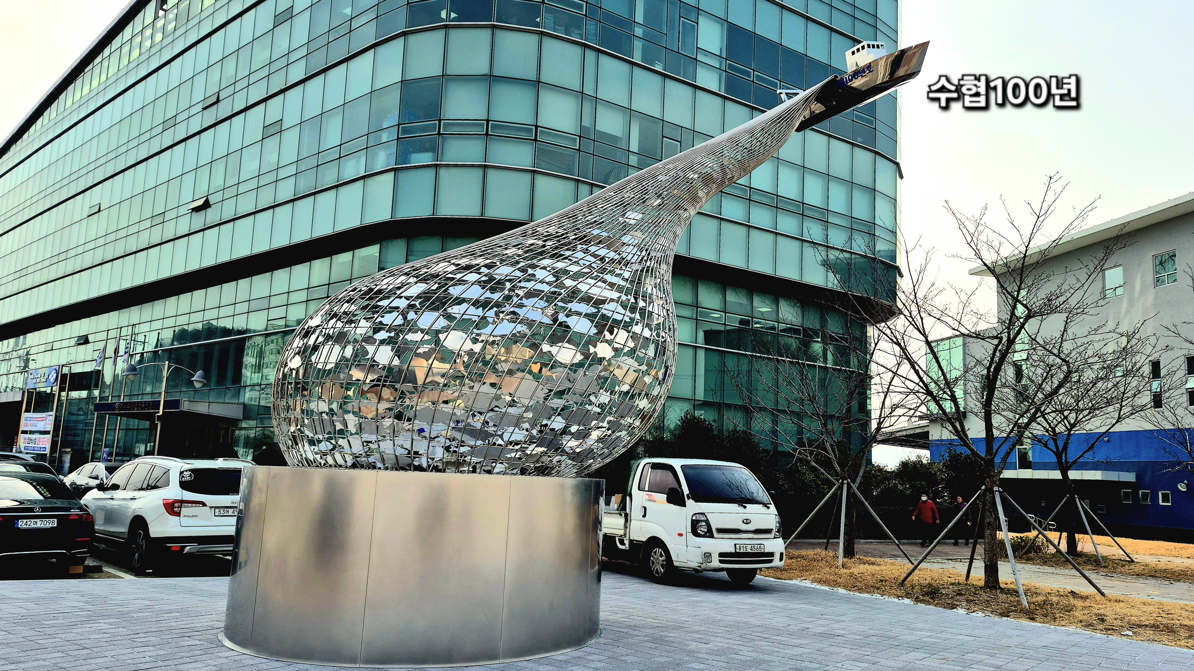 이조형물은 여수수협이 걸어온 100년의 역사와 어업인들의 헌신을 기념하며 바다를 향한 우리의 일정과 지속 가능한 미래를 향한 다짐을 담았다.