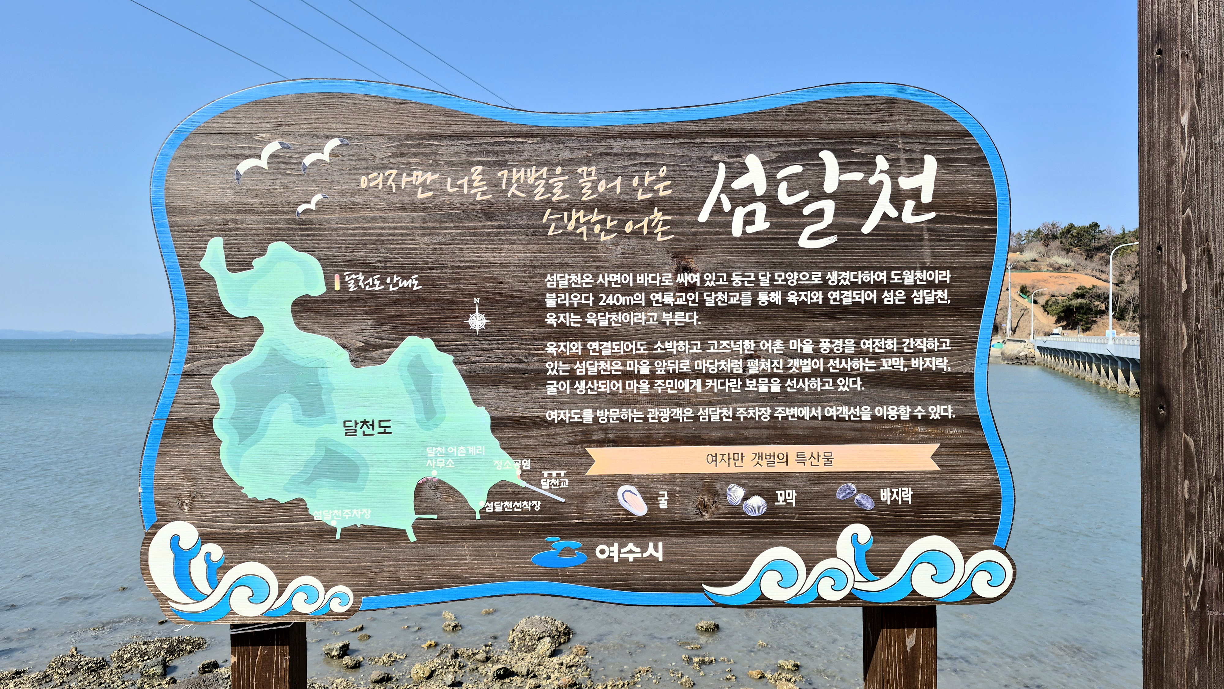 육지와 연결되어도 소박하고 고즈넉한 어촌 마을 풍경을 여전히 간직하고 있는 섬달천은 마을 앞뒤로 마당처럼 펼쳐진 갯벌이 선사하는 꼬막, 바지락, 굴이 생산되어 마을 주민에게 커다란 보물을 선사하고 있다.