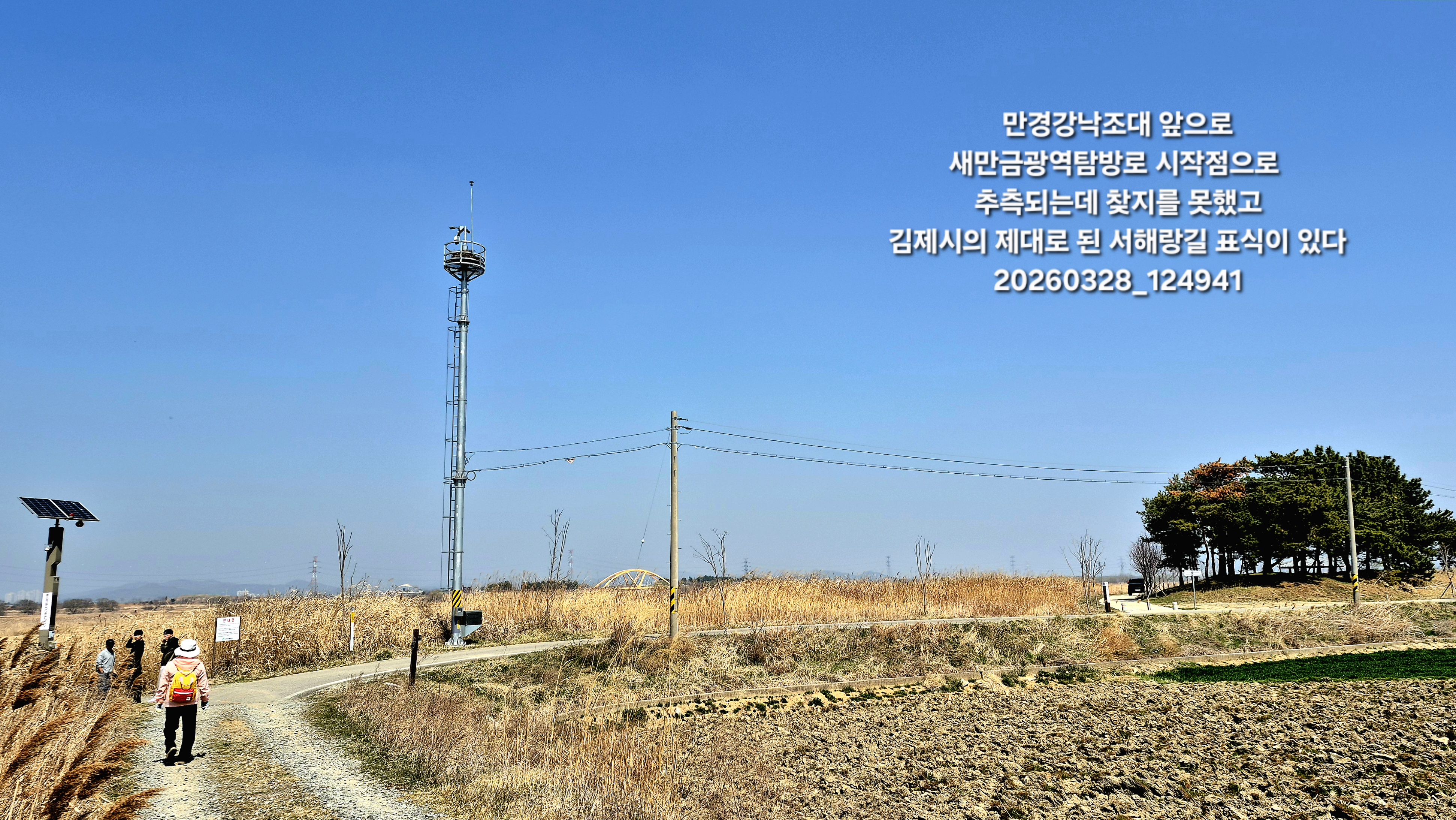 12:49 만경강낙조대 앞으로 새만금광역탐방로 시작점으로 추측이 되는데 찾지를 못했고 김제시의 선명한 서해랑길 표식이 있다